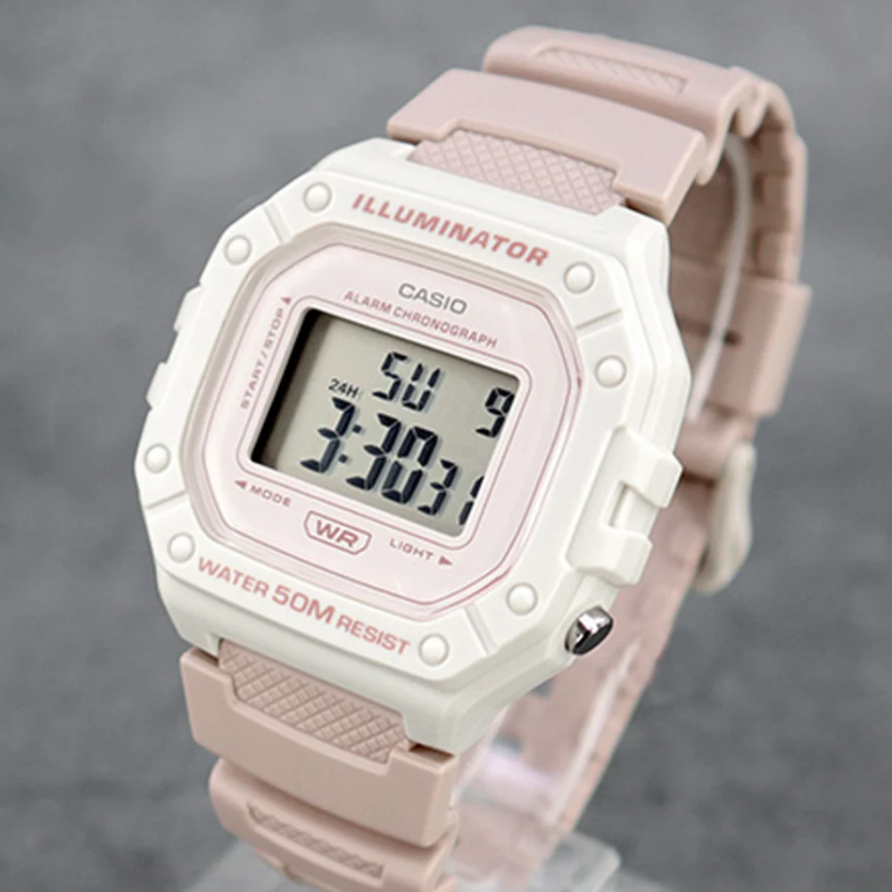 This sporty design features a colorful pop to take you seamlessly from dressy to casual, whatever is on your calendar. Not just versatile, but practical, as well. With the functionality that digital delivers — LED light for easy reading in the dark, 1/100-second stopwatch, alarm, and calendar — all protected by 50-meter water resistance.