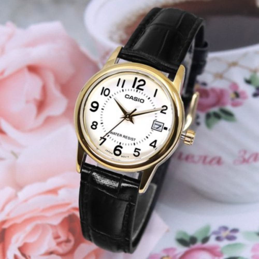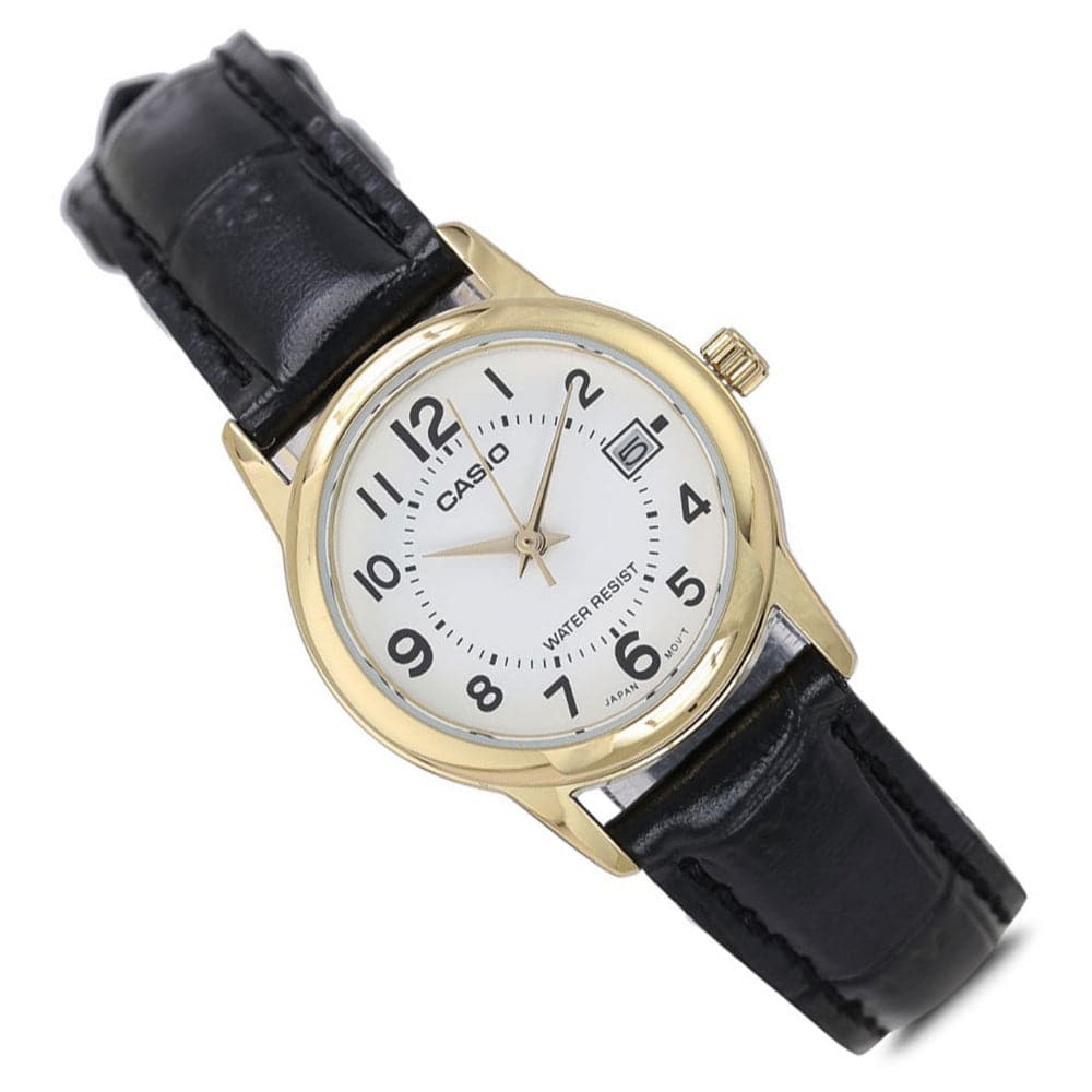 CASIO GENERAL LTP-V002GL-7BUDF-P BLACK LEATHER WOMEN WATCH