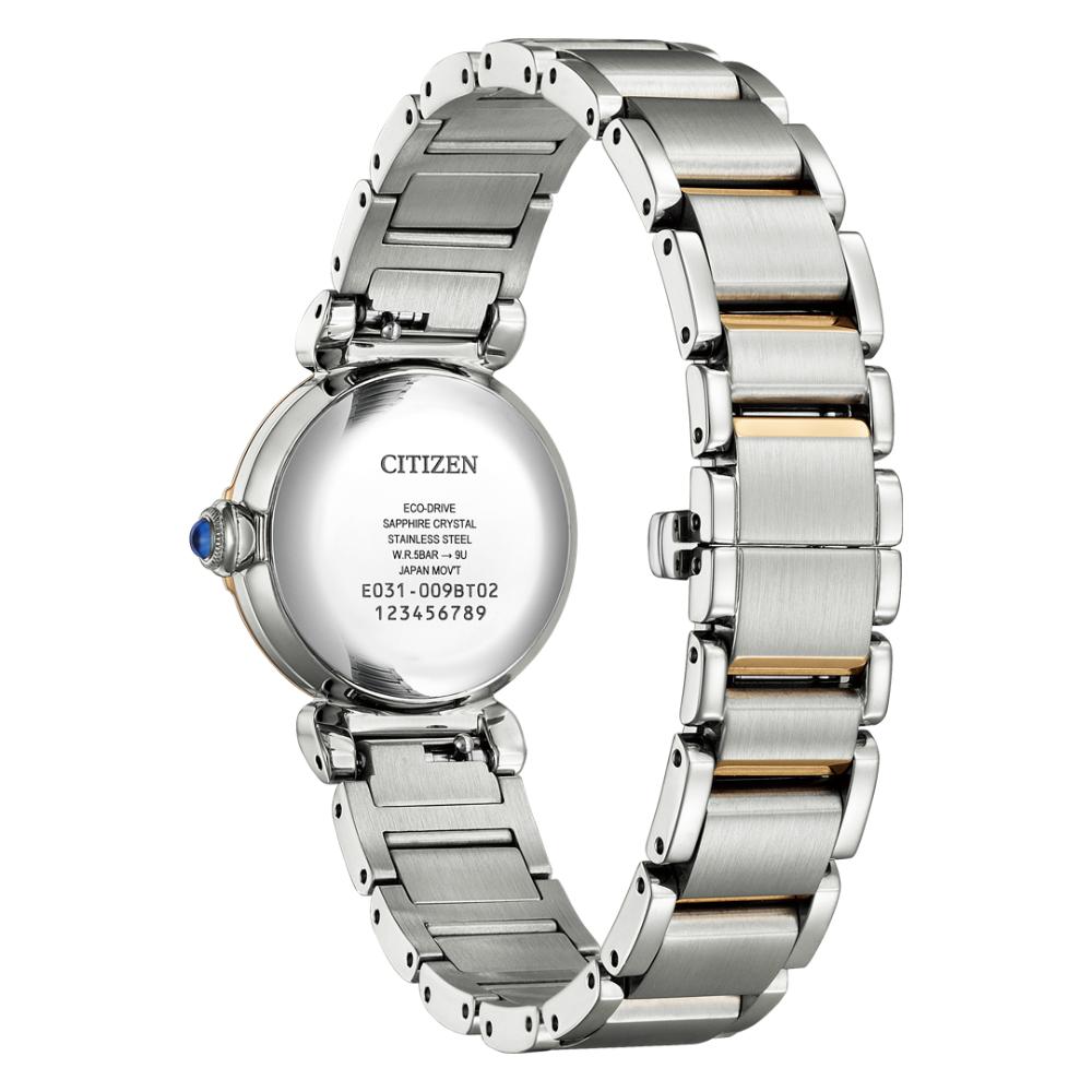 Classic lines and hints of romance make this newest timepiece to our women’s collection, the Citizen L Mae, a glamorous addition of sustainable luxury. With a 26mm case design inspired by a vintage perfume bottle and featuring the curved, sleek lines of May bells, the diamond-set bezel shape has a distinct feature at the 3 o’clock position, where the crown resembles an elegant perfume stopper.