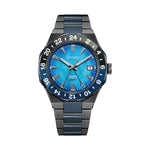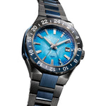 Water resistant to 100m and able to withstand magnetic fields up to 16,000 A/m, the watch is powered by the high-performance Caliber 9054, with the mechanism allowing for local and travel time displays alongside an independently set hour hand. The automatic GMT movement is visible through a sapphire exhibition case back and is capable of maintaining an accuracy of +20 / -10 seconds per day with a frequency of 28,800 v/h and a power reserve of 50 hours.