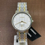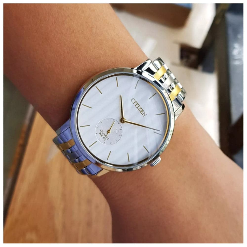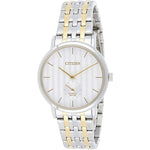 The simple but profound aesthetic of this Citizen Quartz men's essential reminds us that you don’t need to be loud to be heard. The dial has a unique vertical patterns depicting a stage where the curtain is ready to be raised. The small second indicator metaphorically represent the counter for the curtain raiser. Features a two tone Stainless Steel case and multilink bracelet with white dial. Citizen Quartz watches are powered by high precision Quartz movement, which is Made in Japan, they are extremely reliable and have very low Maintenance to give you accurate timekeeping effortlessly.
