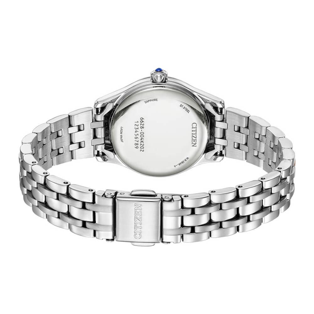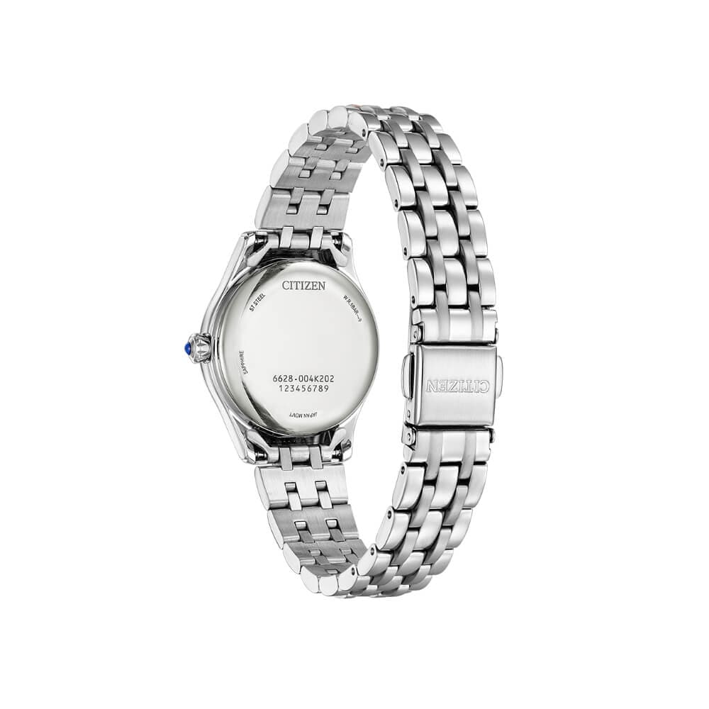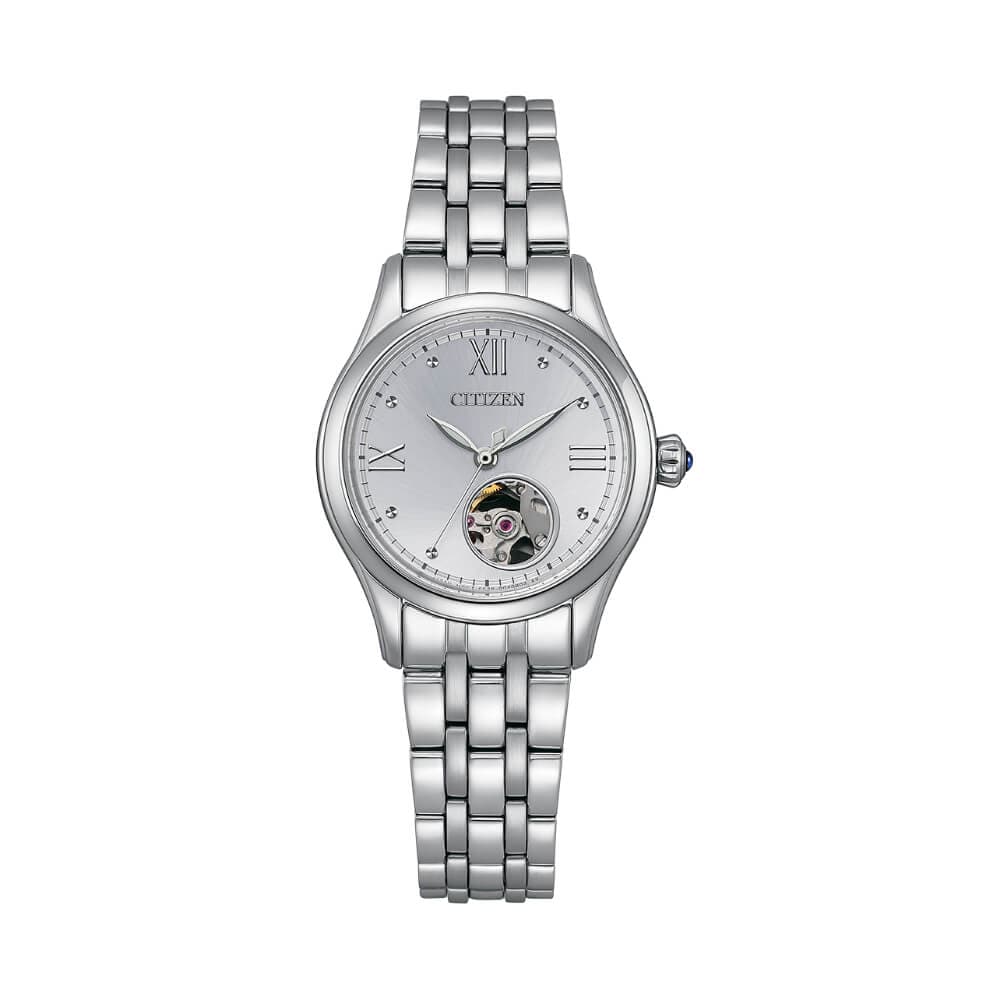A feminine design that combines the technology and craftsmanship Citizen has to offer. Part of the Women’s Automatic collection, this watch features a 40-hour power reserve, 50-meter water resistance, silver indices against a silver, open heart dial encased in a stainless-steel case and matching bracelet. By incorporating functionality and design, you can experience luxury and confidence daily.