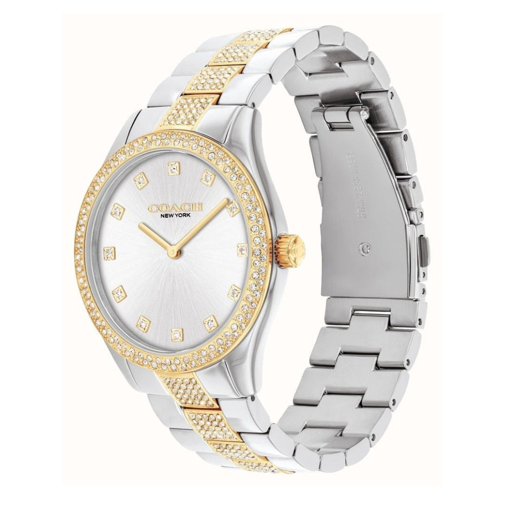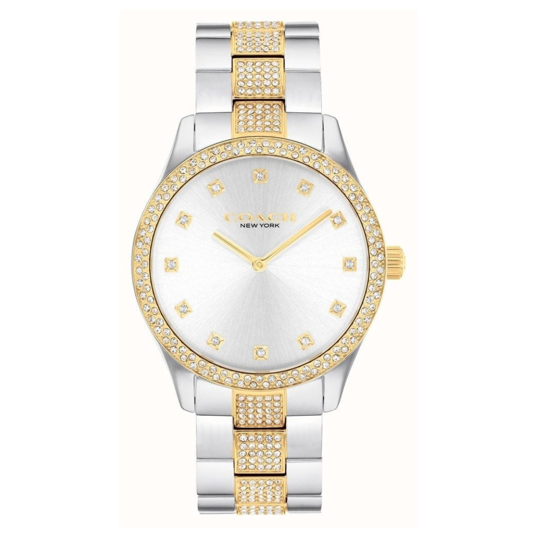 The Coach Brooks 14400034 exudes elegance and sparkle, perfect for women seeking a sophisticated timepiece. Part of the distinguished Brooks collection, its two-tone design and crystal embellishments make it ideal for elevating everyday wear or complementing evening attire.