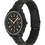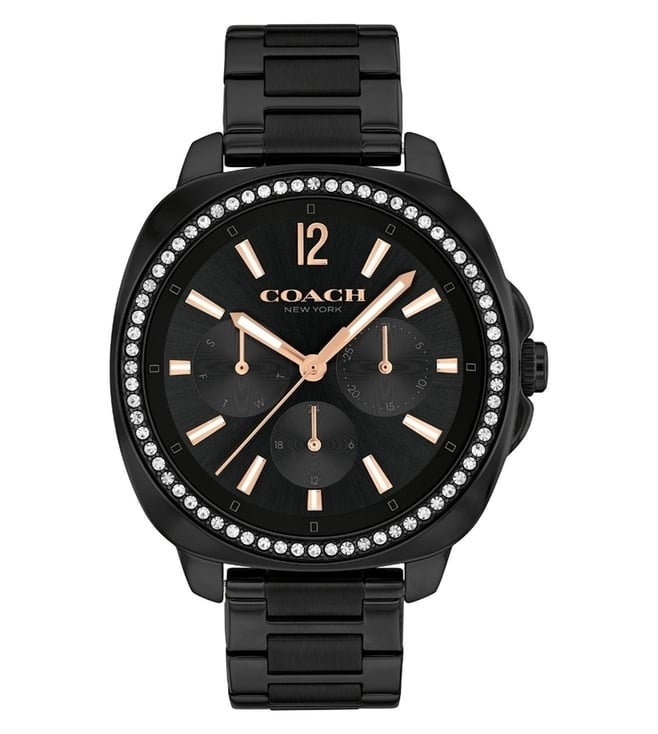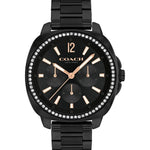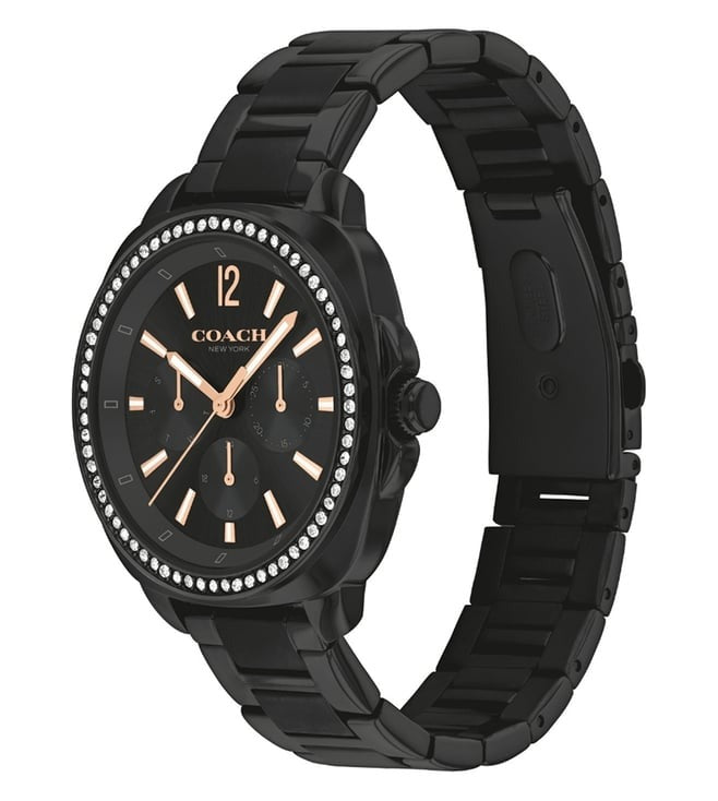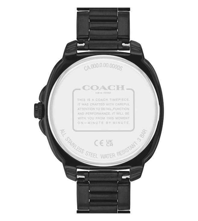 The Coach Kitt Black Watch is a stylish, functional timepiece that is designed to impress. Featuring a sleek 38mm black dial with mineral glass protection, it provides a sophisticated look while keeping accurate time. The watch offers additional features such as day and date functions, making it a practical yet fashionable accessory. The black stainless steel strap complements the sleek design, and it is backed by a 2-year international warranty.