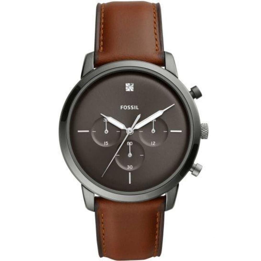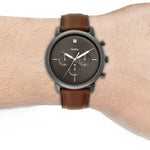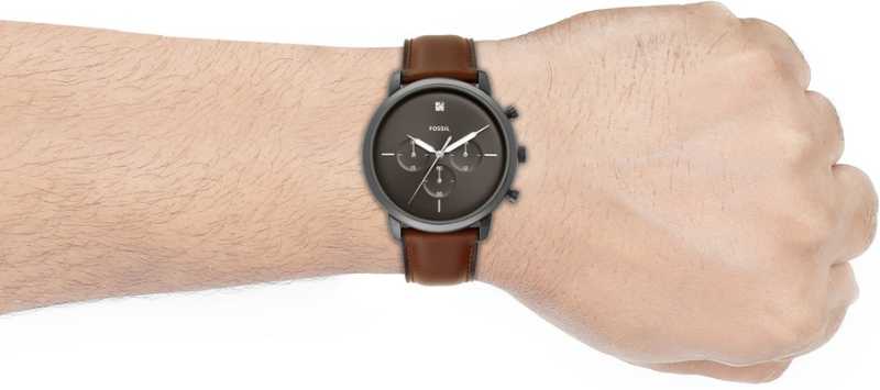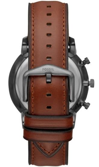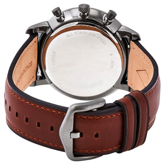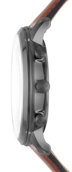 Black PVD stainless steel case with a olive leather strap. Fixed black PVD bezel. Black dial with luminous black hands and Arabic numeral hour markers. Minute markers around the outer rim. Dial Type: Analog. Luminescent hands. Three multi-function displays: 24 hour, date and day of the week. Quartz movement. Scratch resistant mineral crystal. Pull / push crown. Solid case back. Case diameter: 44 mm. Case thickness: 12 mm. Round case shape. Band width: 22 mm. Tang clasp. Water resistant at 100 meters / 330 feet. Functions: date, day, hour, minute, second. Casual watch style. Fossil Aeroflite Multi-Function Black Dial Olive Leather Men's Watch.