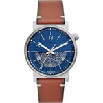 Black PVD stainless steel case with a olive leather strap. Fixed black PVD bezel. Black dial with luminous black hands and Arabic numeral hour markers. Minute markers around the outer rim. Dial Type: Analog. Luminescent hands. Three multi-function displays: 24 hour, date and day of the week. Quartz movement. Scratch resistant mineral crystal. Pull / push crown. Solid case back. Case diameter: 44 mm. Case thickness: 12 mm. Round case shape. Band width: 22 mm. Tang clasp. Water resistant at 100 meters / 330 feet. Functions: date, day, hour, minute, second. Casual watch style. Fossil Aeroflite Multi-Function Black Dial Olive Leather Men's Watch CH2941.