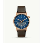 Black PVD stainless steel case with a olive leather strap. Fixed black PVD bezel. Black dial with luminous black hands and Arabic numeral hour markers. Minute markers around the outer rim. Dial Type: Analog. Luminescent hands. Three multi-function displays: 24 hour, date and day of the week. Quartz movement. Scratch resistant mineral crystal. Pull / push crown. Solid case back. Case diameter: 44 mm. Case thickness: 12 mm. Round case shape. Band width: 22 mm. Tang clasp. Water resistant at 100 meters / 330 feet. Functions: date, day, hour, minute, second. Casual watch style. Fossil Aeroflite Multi-Function Black Dial Olive Leather Men's Watch CH2941.