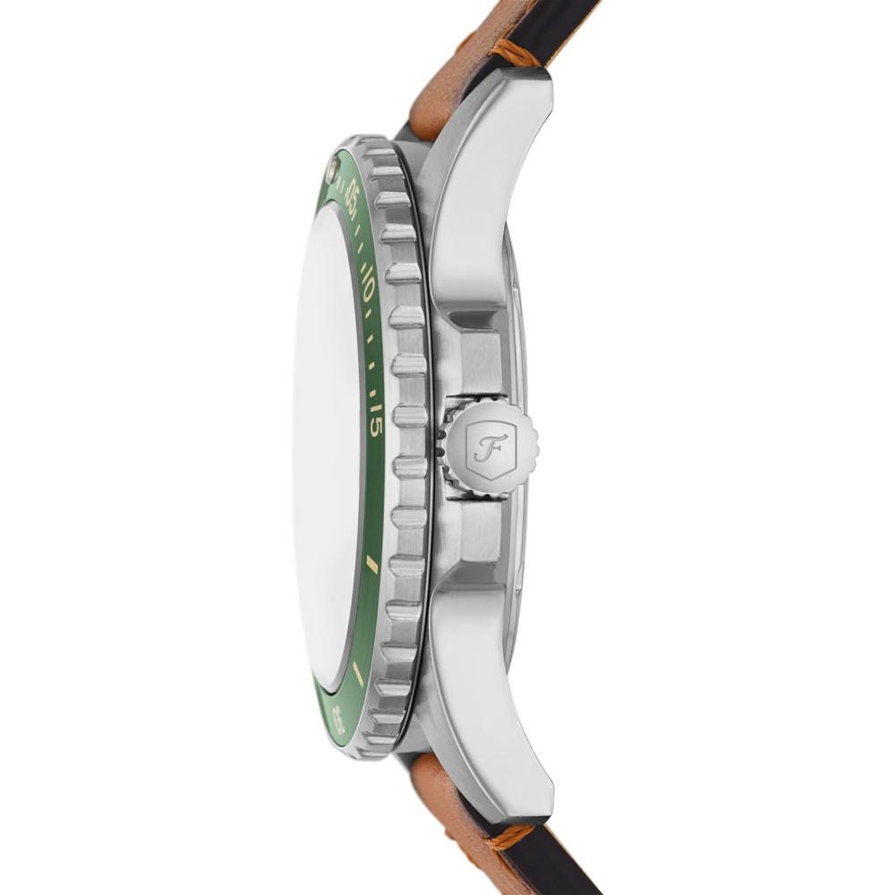Purposeful design details define our time-honored watch collection, Fossil Blue Dive. This dive-style timepiece is expertly crafted with a tan LiteHide™ leather strap, geometric indices and a unidirectional rotating topring. Tested to 100 meters of water resistance. *Not ISO certified.