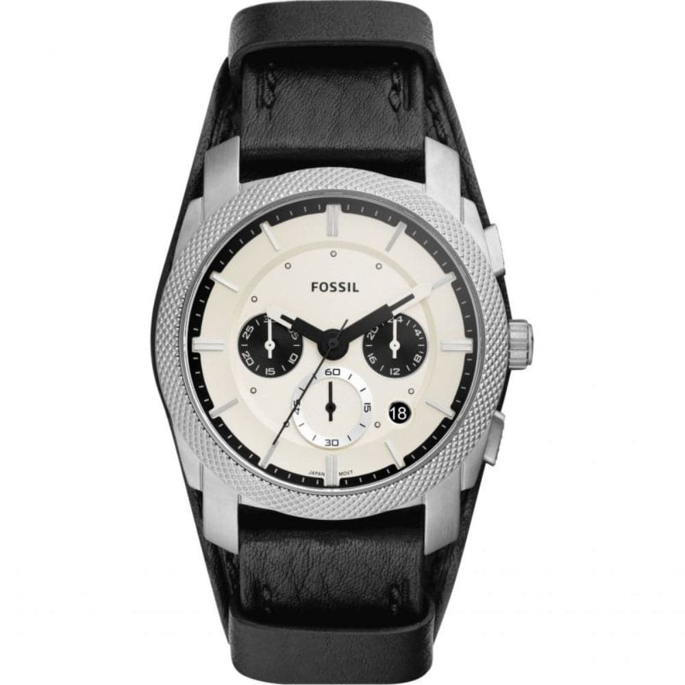 This 42mm Machine features a white satin, textured dial, chronograph movement and black LiteHide⢠leather strap.