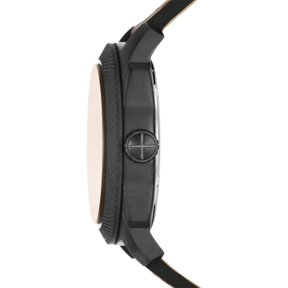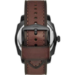 This 49mm Machine features a black sunray textured dial, three-hand date movement and dark brown LiteHide™ leather strap. Fossil leather products support responsible manufacturing via the Leather Working Group.