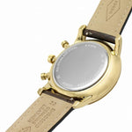 This 42mm Minimalist watch features a blue sunray dial, chronograph movement and brown croco eco leather strap.