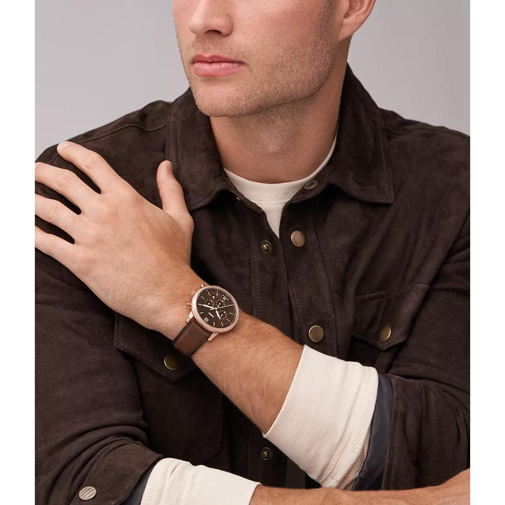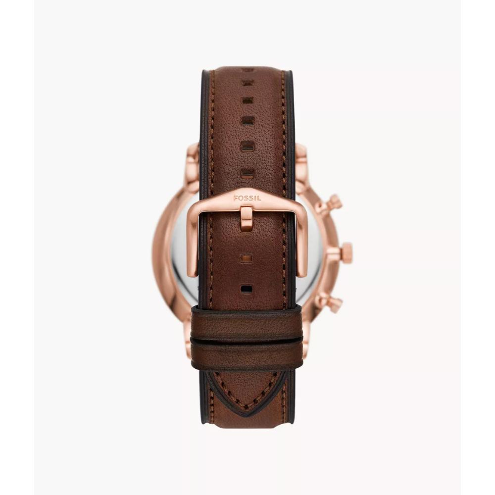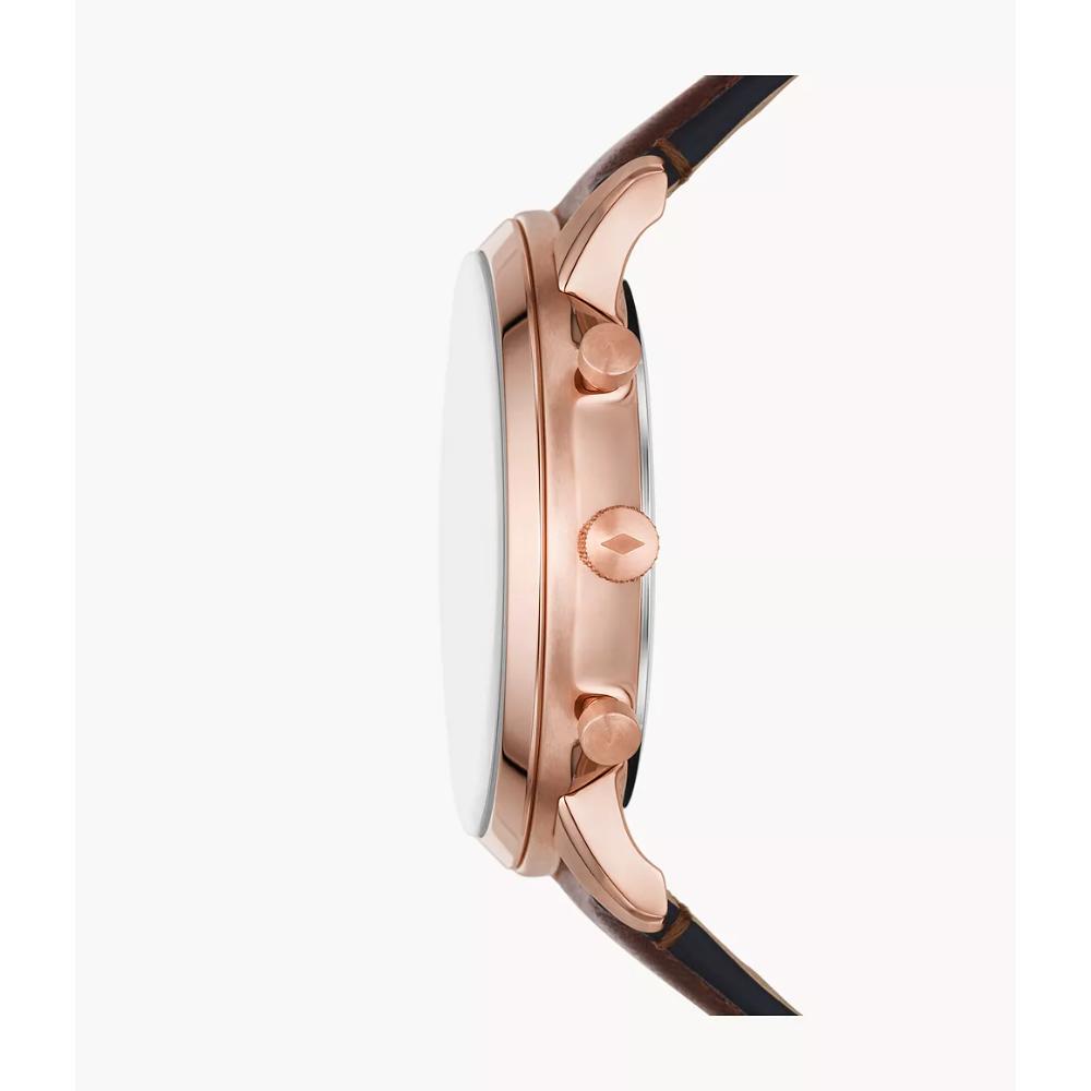 Inspired by architecture’s proportions and symmetry, the Neutra Chronograph is refined and versatile. Featuring a rose gold-tone case, brown sunray dial, brown leather strap and subdials for 24-hour time, 60-seconds elapsed time and 30-minutes elapsed time, this is one of our most functional watches. Fossil leather products support responsible manufacturing via the Leather Working Group.