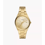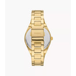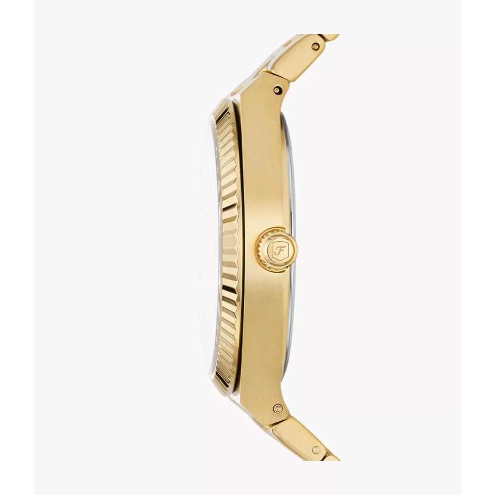 This 38mm Scarlette features a gold sunray dial, three-hand date movement and gold-tone stainless steel bracelet.