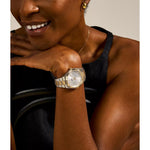 This 38mm Scarlette features a silver sunray dial, three-hand date movement and two-tone stainless steel bracelet.