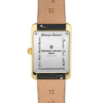 The new Classics Carrée Small Seconds collection features a 36 x 25mm polished gold tone stainless steel 3-part case with a silver tone dial with matt finishing, black printed Roman numerals, black hour and minute hands, and a small seconds counter at 6 o’clock with black hand. Set on a black calf leather strap with crocodile pattern embossing and tone-on-tone stitching with pin buckle.
