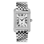 The new Classics Carrée Small Seconds collection features a 36x25mm polished gold tone stainless steel 3-part case with a silver color dial with matt finishing, black printed Roman numerals, black hour and minute hands, a small seconds counter at 6 o’clock with black hand. Set on a polished gold tone stainless steel 7-links bracelet with folding buckle.