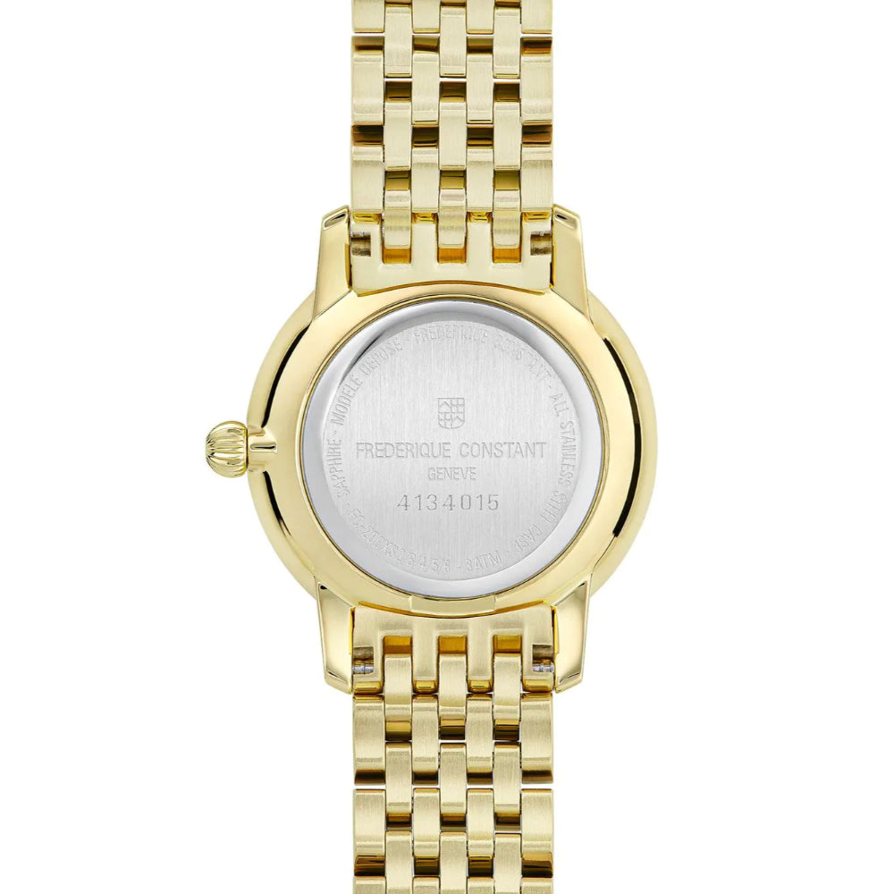 The Frederique Constant Ladies watch FC-200S5B is an elegant companion from the model series Classics slimline ladies mini gold 25mm 3ATM. A perfect choice if you are looking for a timepiece with a classic look.