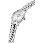 The watch has a silver case, made of Stainless steel, which looks like a real eye-catcher thanks to the Polished surface.