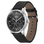 The Hugo Boss Contender 1514125 is a stylish and reliable timepiece featuring a sleek black leather strap, black dial, and multifunction quartz movement—perfect for both function and fashion.