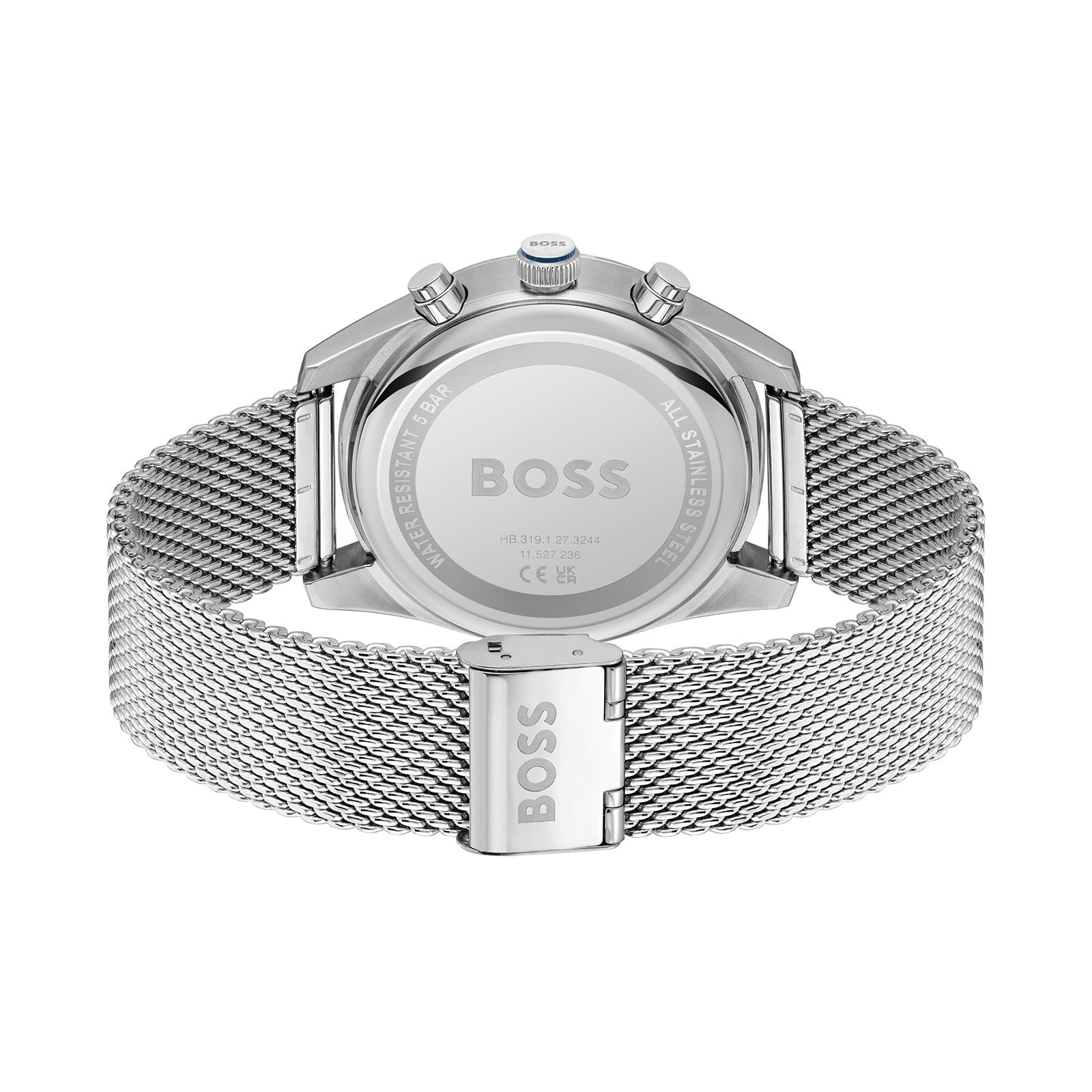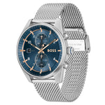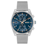 The Hugo Boss Skytraveller Blue Dial Mesh Steel Watch 1514149 offers a sleek design with a refined blue dial and a stainless steel mesh strap, perfect for a sophisticated yet contemporary look.