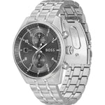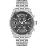 The Hugo Boss Skytraveller Gray Dial Steel Watch 1514151 combines a contemporary gray dial with a polished stainless steel strap, offering a timeless yet modern aesthetic.