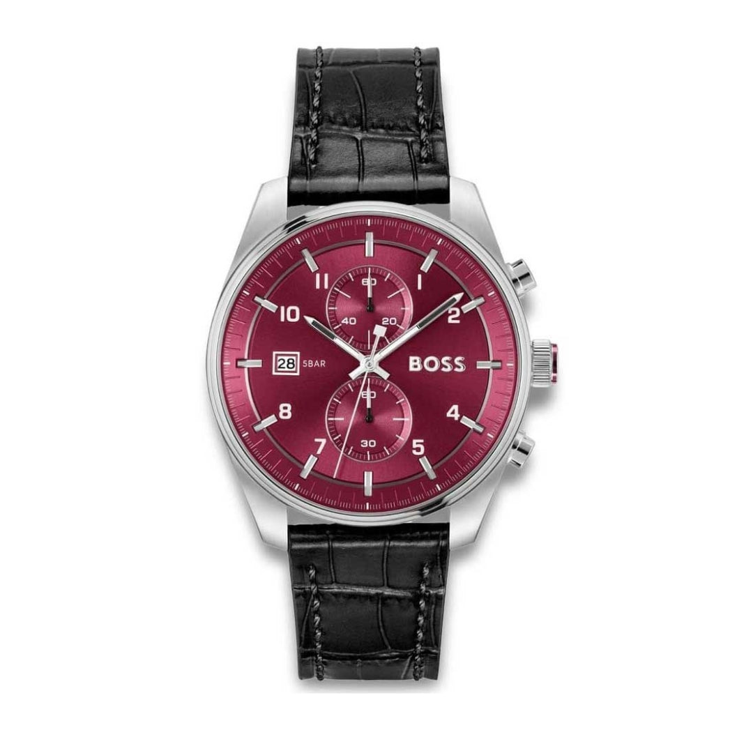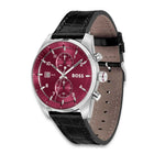 Hugo Boss Skytraveller Red Dial Black Leather Watch 1514193