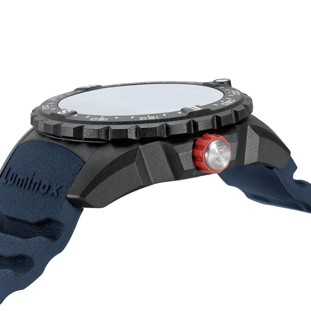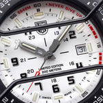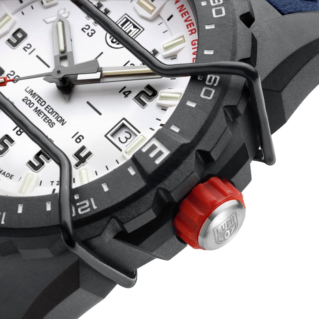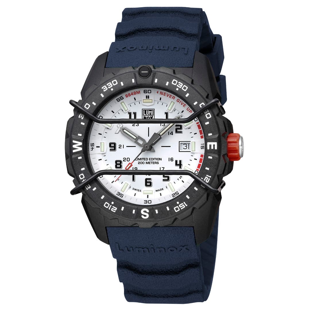 The limited-edition version boasts a 43mm CARBONOX™ case with a striking white dial, deep blue strap, and red crown to match the colors of the flag of Nepal. The case back is decorated with Mount Everest in relief and the outer ring is marked with “8848M” – the altitude of Mt Everest. Luminox will launch 800 pieces worldwide of the Bear Grylls Limited Edition Mountain Timepiece.