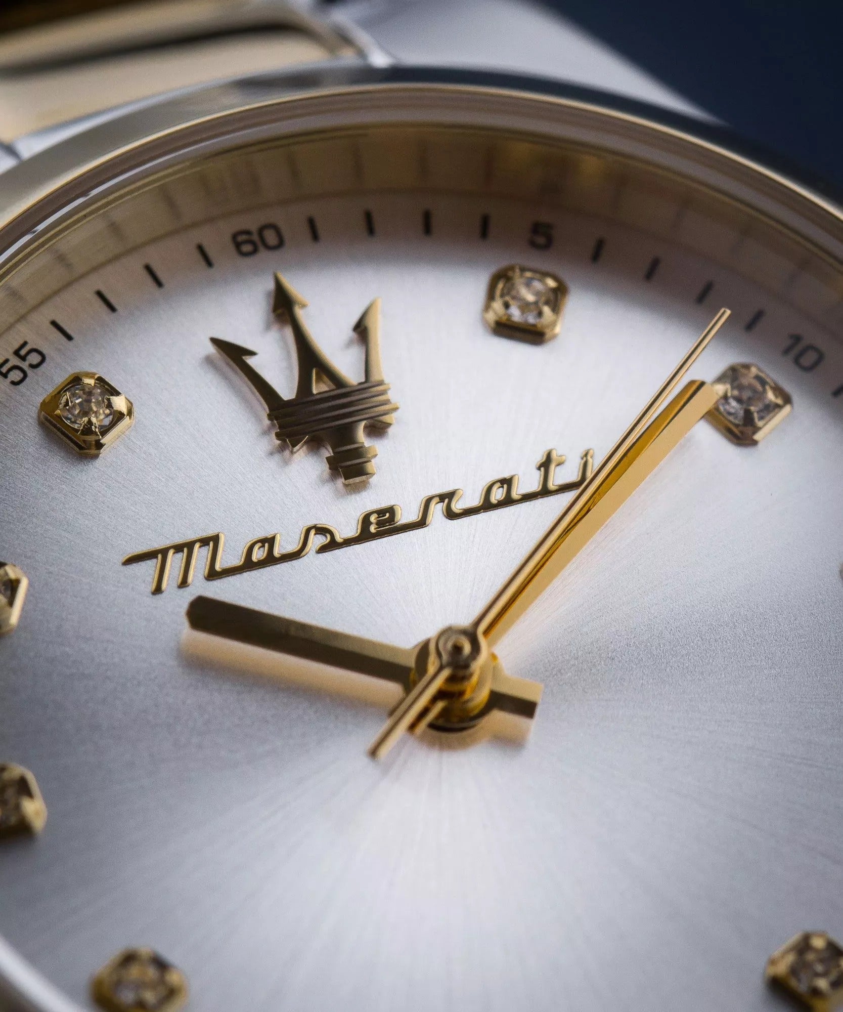 Description: Women's Maserati R8853151505 watch from the Attrazione series, embodying elegance with a classic style. Crafted from silver-gold stainless steel, this model has a timeless, sophisticated appearance. The minimalist silver dial and compact size make it versatile for any outfit or occasion.
