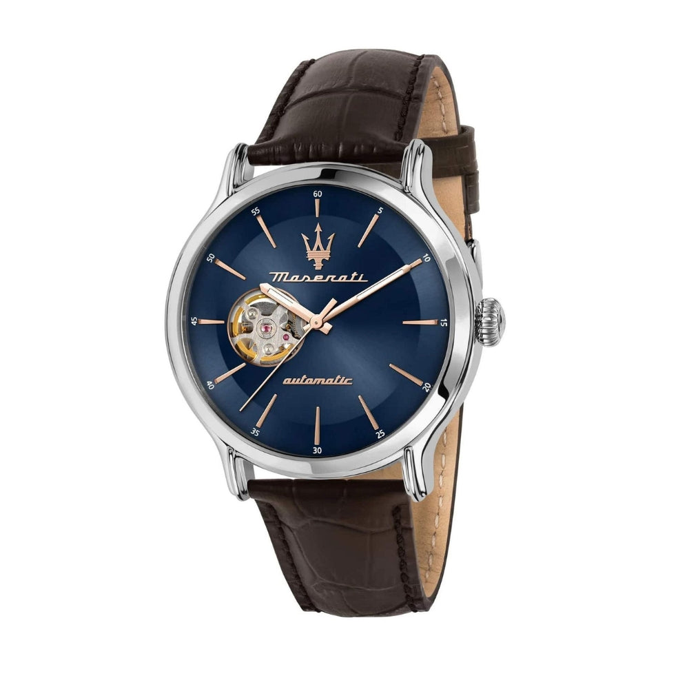 MASERATI EPOCA R8821118010 OPEN HEART BLUE DIAL LEATHER STRAP WATCH