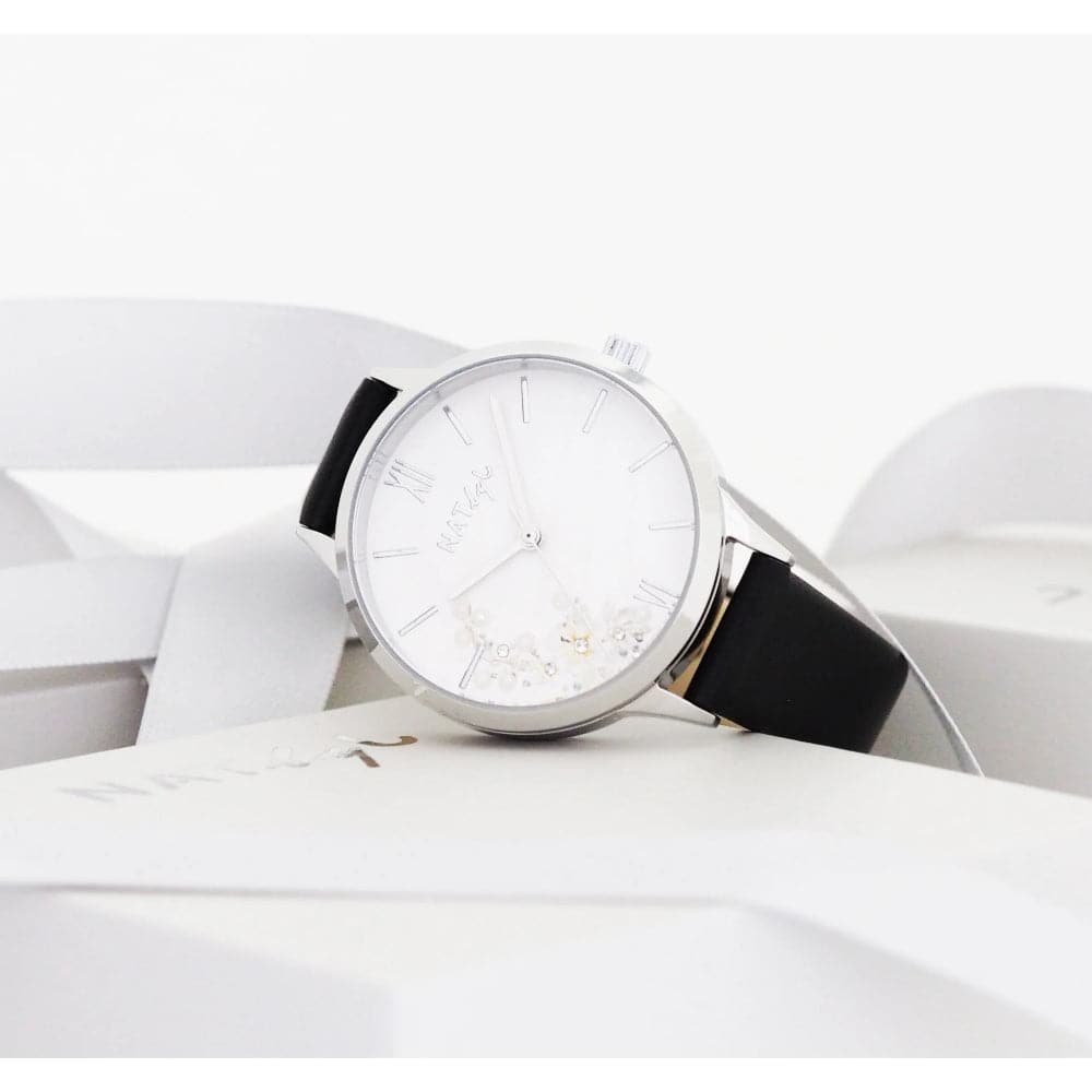 Natbyj First Love Black Leather Strap Women Watch NAT0601