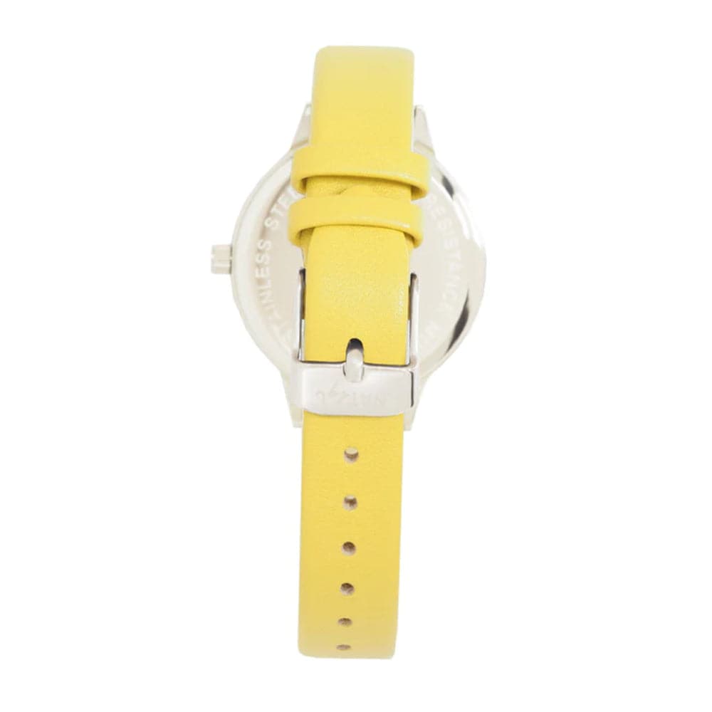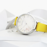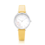 Our First Love 0603 timepiece symbolizes the purity and elegance of every lady's first date. The dial features tiny pearls on the Daffodil flower bouquet design, keeping the flow of its soft and lovely energy. Paired with a yellow genuine leather strap and a stainless steel case, this timepiece promises endless love with its subtlety and attractiveness.