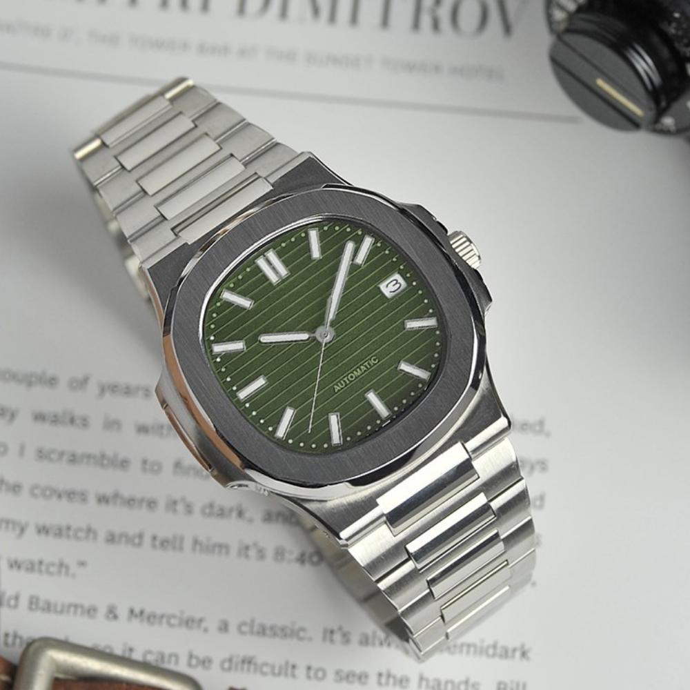Introducing our new custom watch, a timeless blend of elegance and modern functionality inspired by the classic Nautilus design. Crafted with meticulous attention to detail, this masterpiece is available in two exceptional movement options: the NH35A automatic movement with a date function, and the NH38 movement featuring a stunning openheart design on the dial.