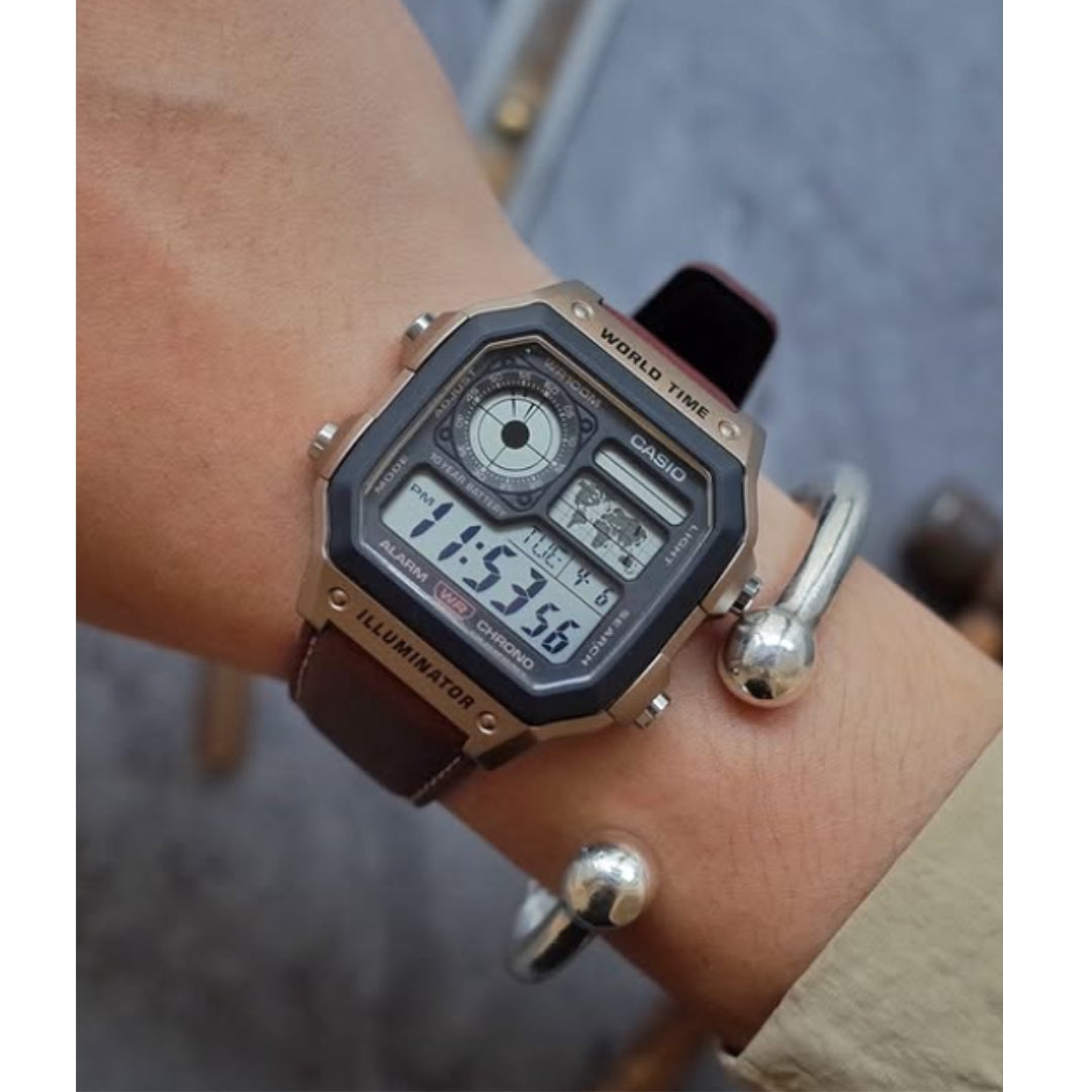 CASIO STANDARD DIGITAL BROWN LEATHER WATCH AE-1200WHL-5AVDF-P