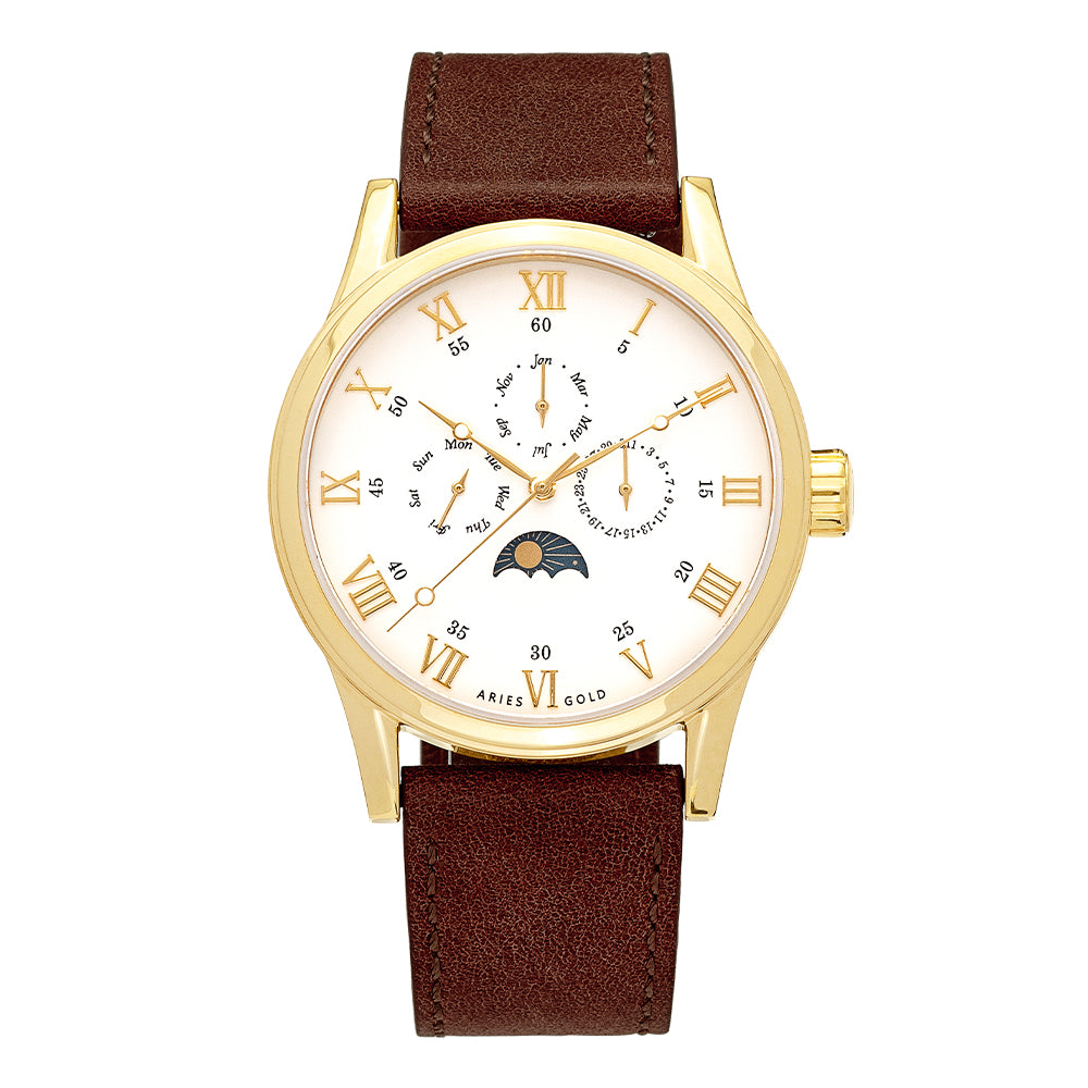 Aries Gold Multifunction Brown Men's Watch - Moon Phase | G 7019 G-WG