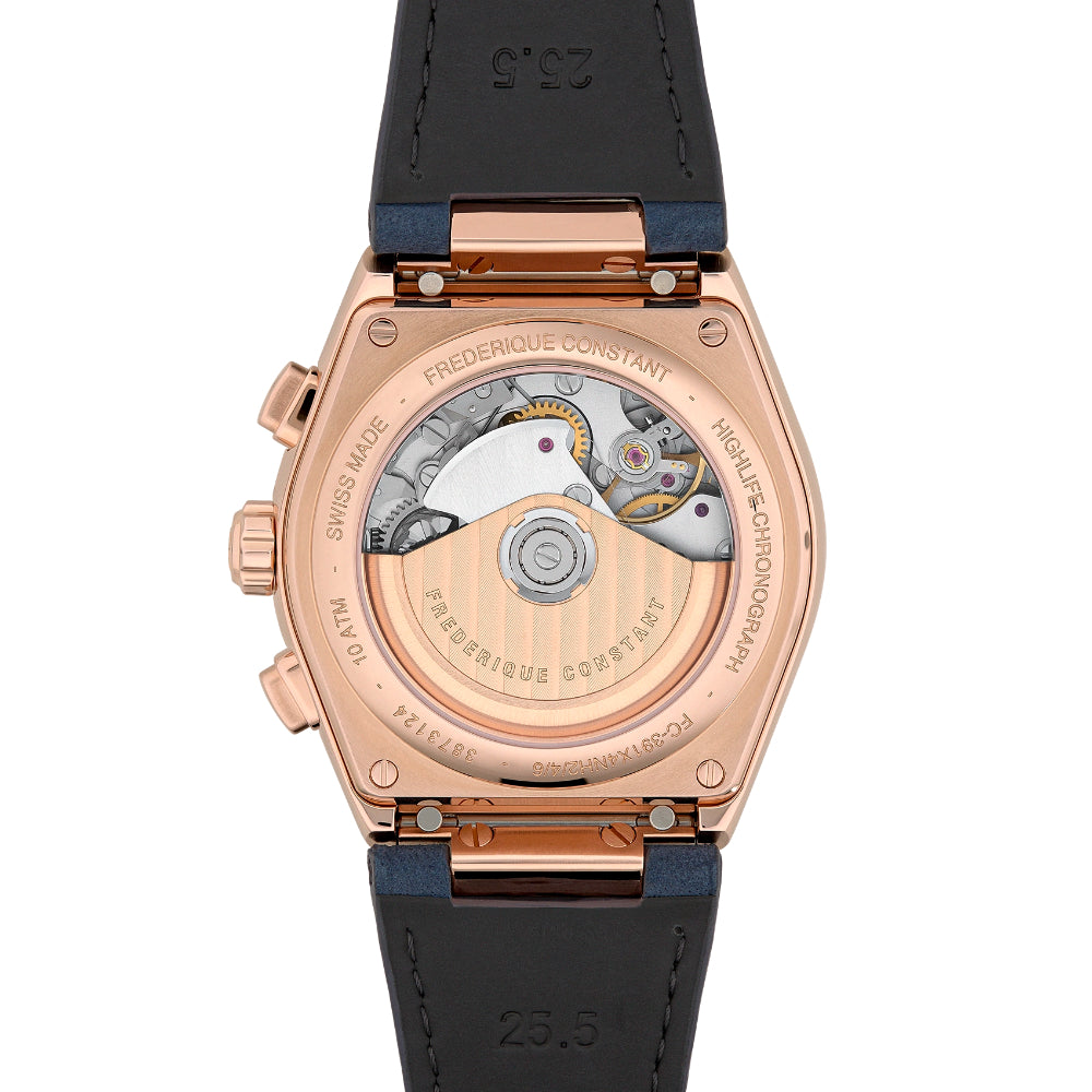 Emblematic complication of watchmaking, the Highlife Automatic Chronograph is equipped with the FC-391 movement, offering a 60-hour power reserve.