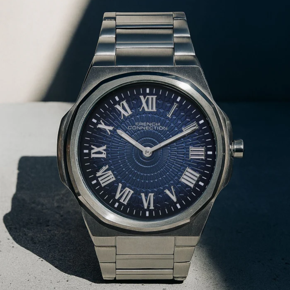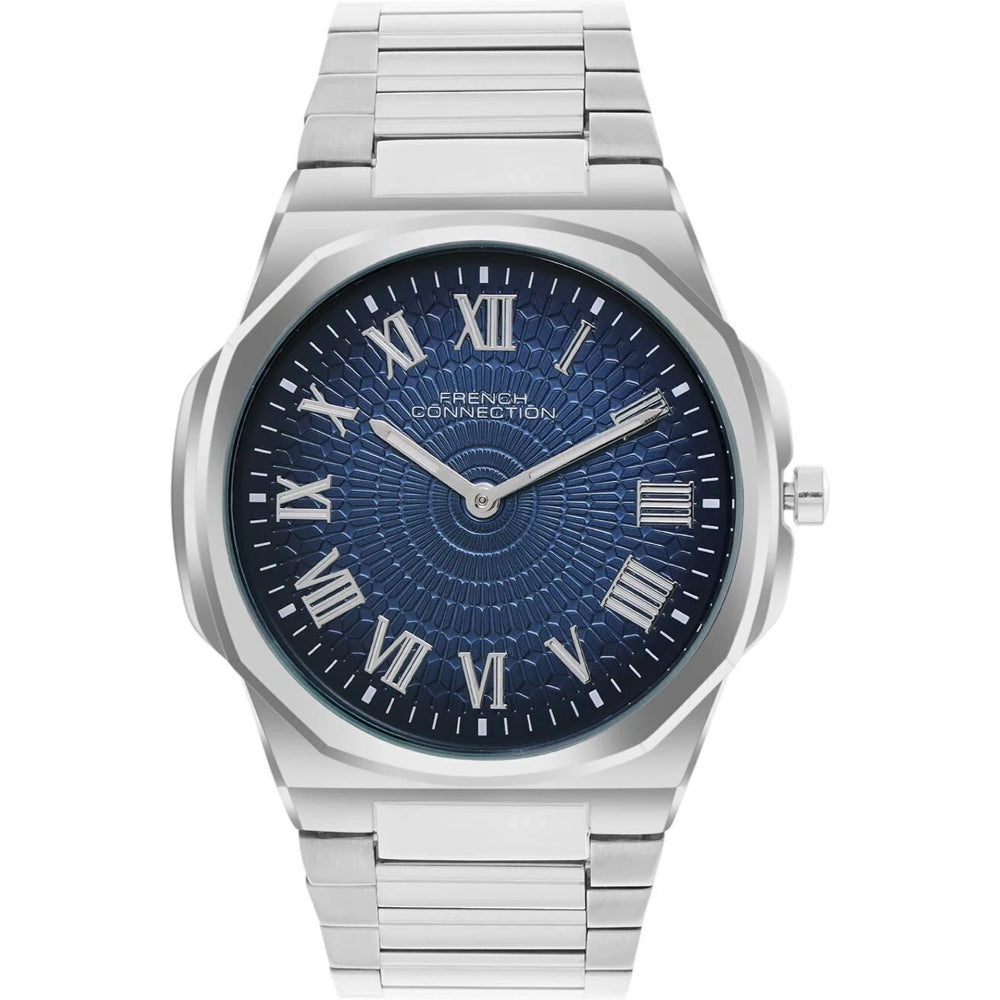 Make a confident statement with the French Connection Blue Stainless Steel Strap Men's Watch. The deep blue dial conveys sophistication and reliability, complemented by a sturdy stainless steel case and strap built to endure. This versatile timepiece suits professional environments and casual settings with equal poise. The durable construction resists scratches and maintains its polished appearance through everyday use. A refined choice for the modern man who values both style and substance. Model: FCN0125USM.