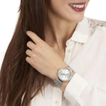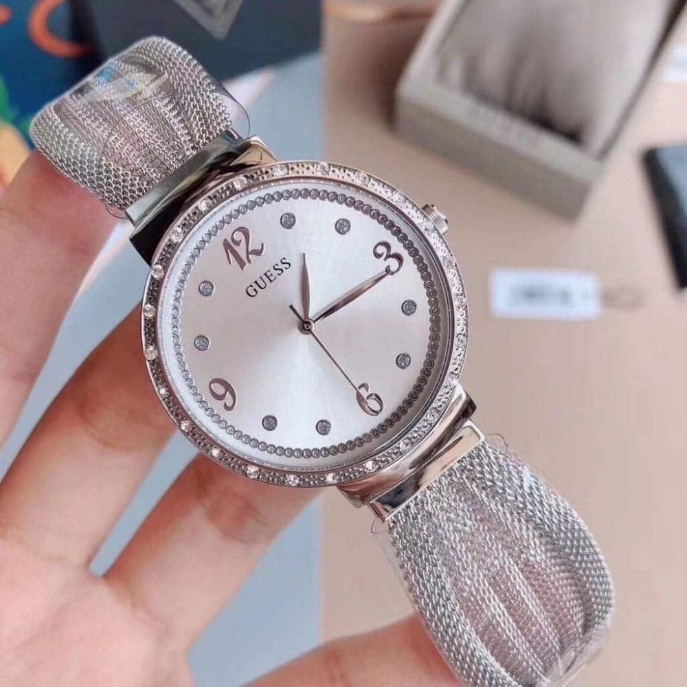 The GUESS watch has a silver colored dial. This watch is provided with a quartz movement and the watch case is made of steel. The case has a size of 36 mm. W1083L1 is marked with a water resistance of 3 ATM. The bracelet is made of steel. The watch is designed with a link clasp.