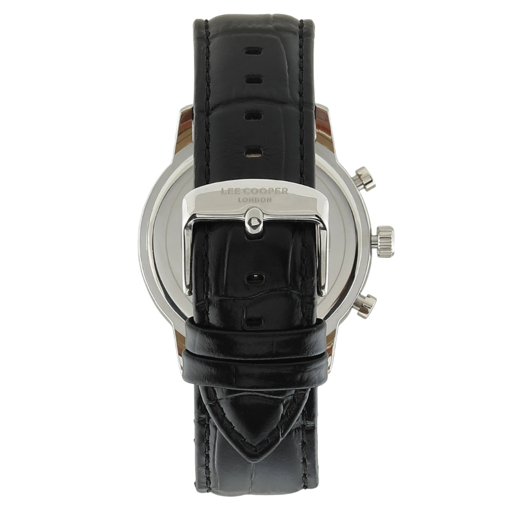 Command attention with the Lee Cooper Chronograph Black Dial Leather Strap Men's Watch LC08186.351. This striking timepiece combines a bold black dial with a luxurious leather strap, creating an accessory that works across any occasion. The chronograph functionality provides precise timing for your workouts, meetings, and everyday moments. Built with meticulous attention to detail and quality materials, this Lee Cooper watch delivers both performance and presence, making it an ideal choice for men who appreciate classic design with contemporary edge and reliable timekeeping.
