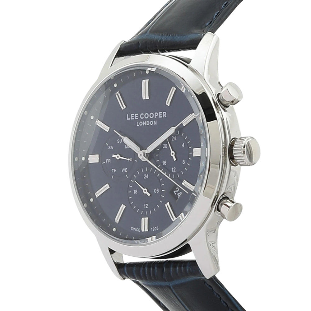 Discover sophisticated style with the Lee Cooper Chronograph Blue Dial Leather Strap Men's Watch LC08186.399. This elegant timepiece showcases a mesmerizing blue dial paired with a premium leather strap that matures beautifully with everyday use. The chronograph complication allows you to measure time intervals with precision, supporting your active lifestyle and professional commitments. Engineered for durability and designed with understated refinement, this Lee Cooper watch serves as a versatile companion that transitions effortlessly from boardroom to weekend adventures, offering timeless appeal and dependable performance.