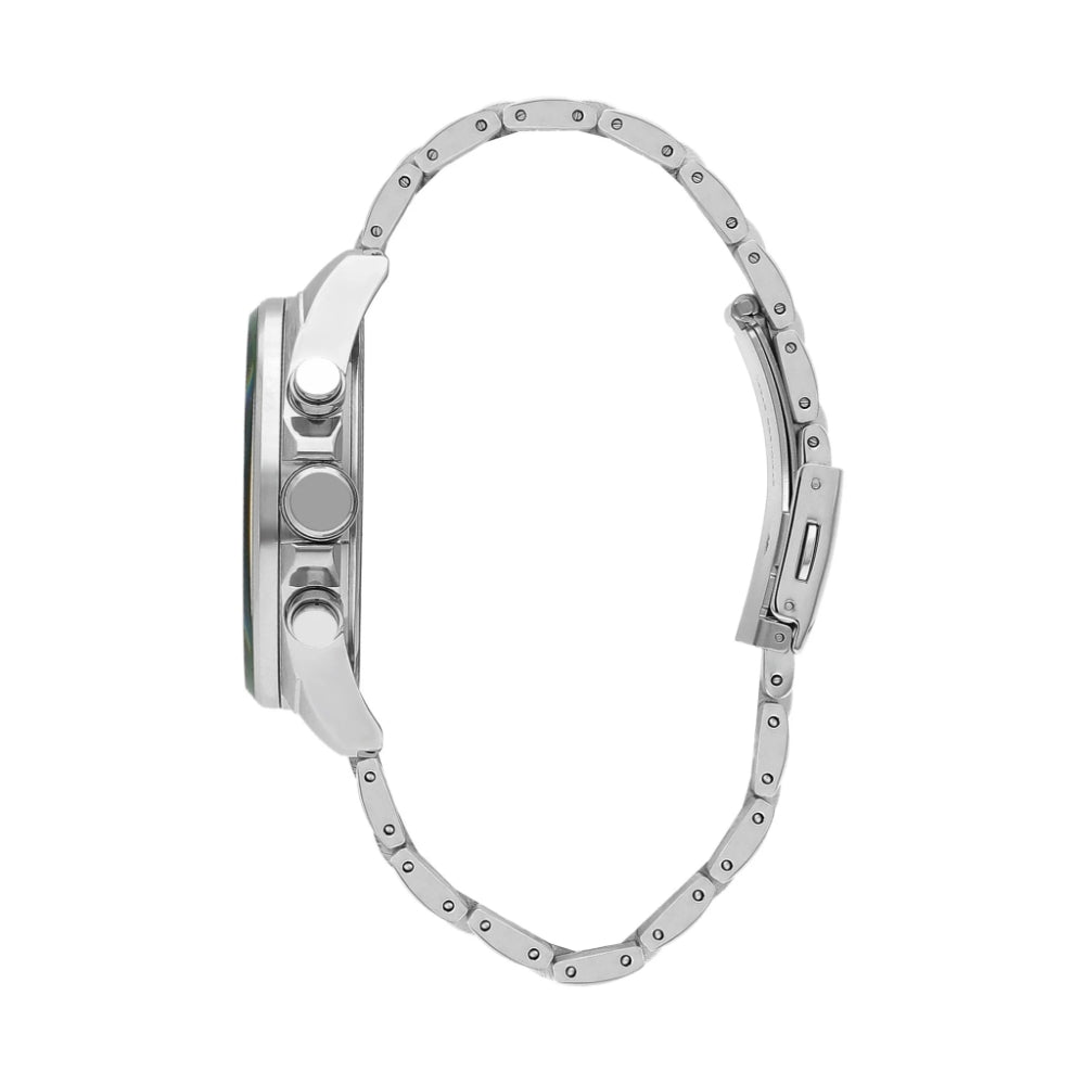 Experience bold style with the Lee Cooper Silver Stainless Steel Strap Men's Watch LC07830.340. This commanding 46mm timepiece showcases a robust stainless steel construction in polished silver, built to withstand daily demands. The mineral crystal provides scratch resistance while the dependable quartz movement ensures accurate timekeeping. Packed with practical features including chronograph functionality, date display, and three-hand configuration, this watch delivers versatility for any occasion. Its 50m water resistance makes it suitable for swimming and snorkeling. Complete with a secure clasp and protected by a 2-year warranty, this Lee Cooper watch is an investment in lasting quality and refined masculinity.