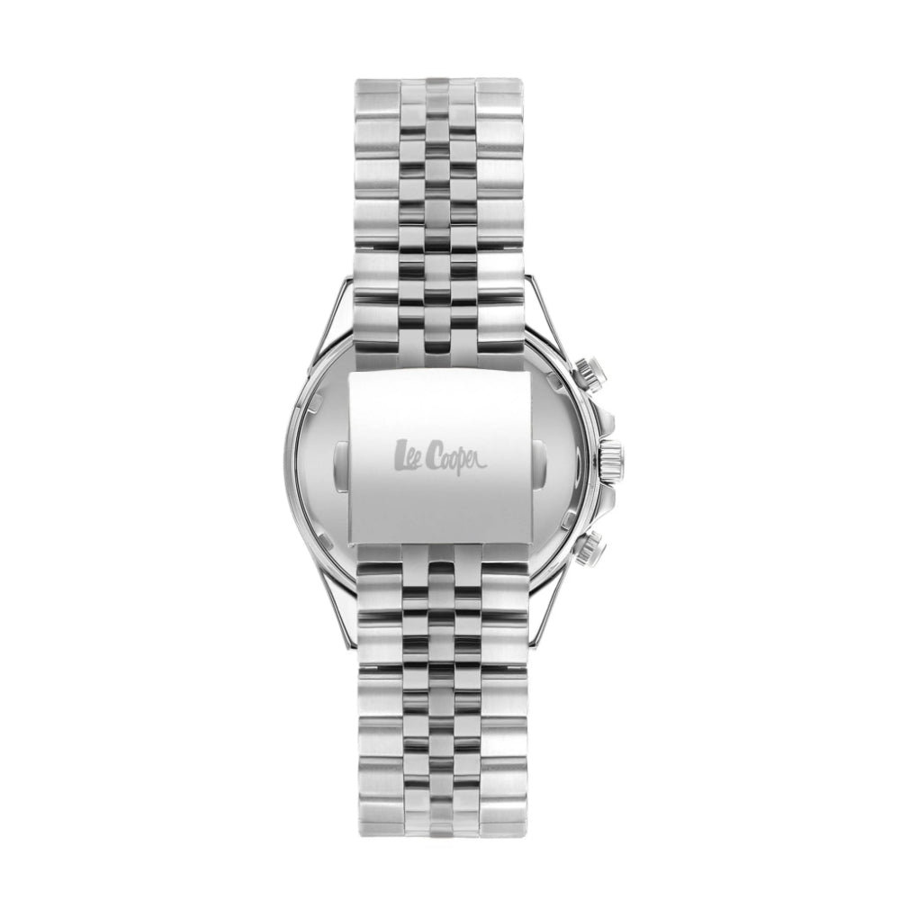 Enhance your everyday look with the sleek and sophisticated Lee Cooper Men's Stainless Steel Multi-Function Watch. Featuring a bold black dial combined with a polished silver stainless steel bracelet, this timepiece delivers a modern yet timeless style. The detailed multi-function sub-dials add both functionality and visual appeal, making it perfect for men who appreciate precision and elegance.