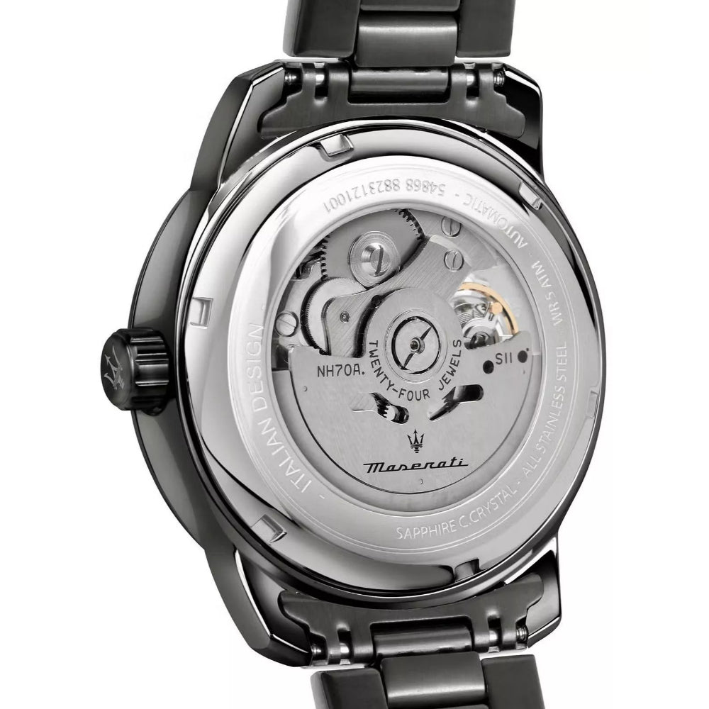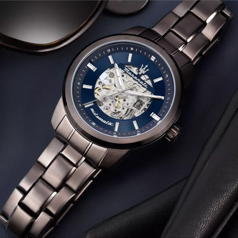 The Maserati Successo R8823121002 men's watch combines modern style with functionality. It has an automatic NH70A movement, making it a watch for those who appreciate traditional watchmaking craftsmanship. The gray-colored stainless steel envelope is 44 mm wide, giving it a solid look. The dial of the watch is transparent, allowing you to admire the intricate internal mechanism. Mineral glass covers the dial, responsible for its protection. The watch is waterproof to 50 meters, making it resistant to minor splashes. The bracelet, also made of stainless steel in gray color, perfectly harmonizes with the whole, creating a cohesive composition. This is an ideal choice for men who are looking for a watch that combines elegance with modernity.