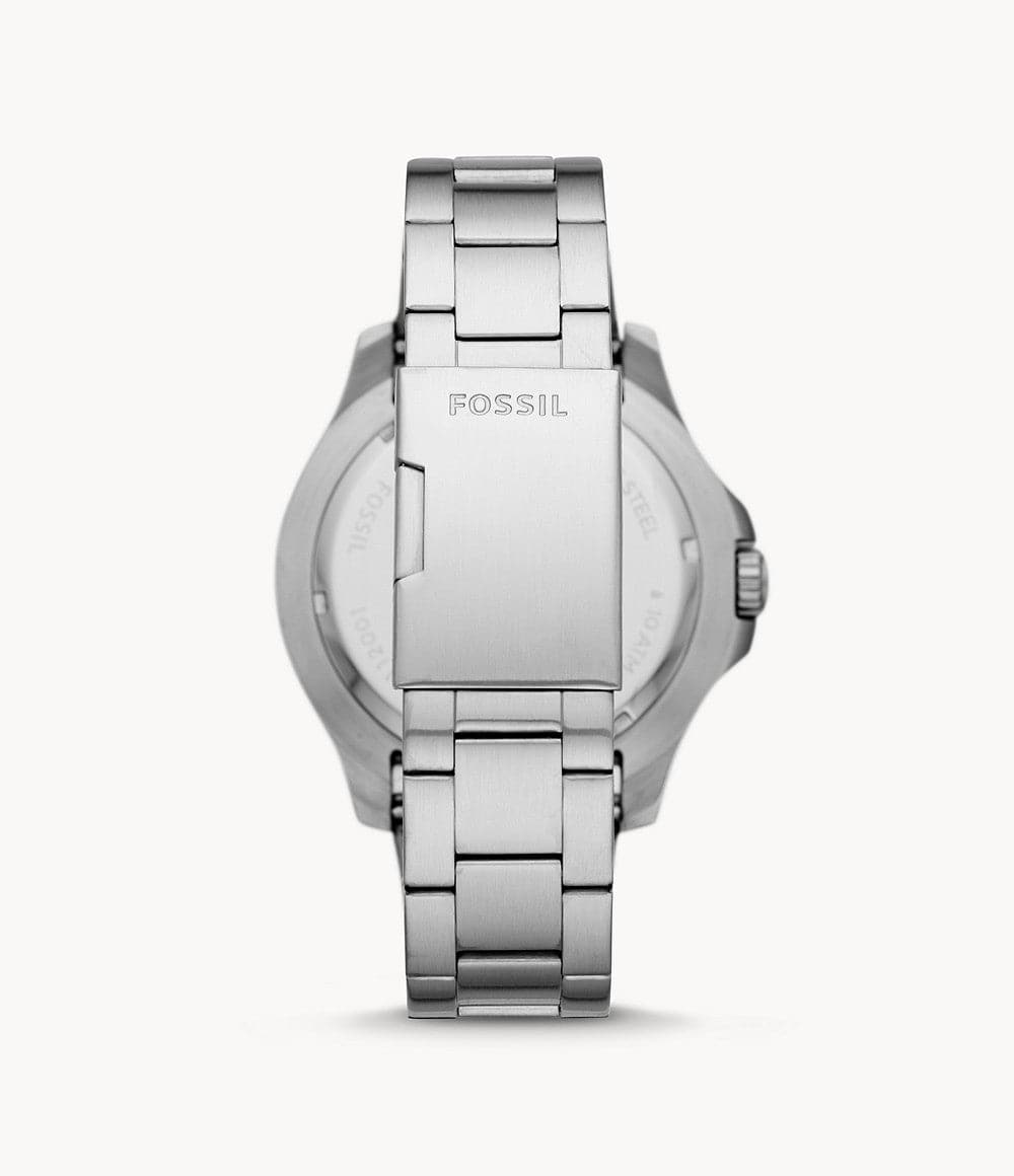 Black PVD stainless steel case with a olive leather strap. Fixed black PVD bezel. Black dial with luminous black hands and Arabic numeral hour markers. Minute markers around the outer rim. Dial Type: Analog. Luminescent hands. Three multi-function displays: 24 hour, date and day of the week. Quartz movement. Scratch resistant mineral crystal. Pull / push crown. Solid case back. Case diameter: 44 mm. Case thickness: 12 mm. Round case shape. Band width: 22 mm. Tang clasp. Water resistant at 100 meters / 330 feet. Functions: date, day, hour, minute, second. Casual watch style. Fossil Aeroflite Multi-Function Black Dial Olive Leather Men's Watch CH2941.