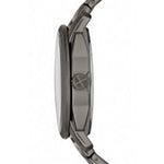 Our Machine stainless steel watch features subtle refinements such as a round stainless steel case on a meticulously sculpted smoke bracelet. The black satin dial adds a fresh, modern look. This Machine watch also features a three hand movement.