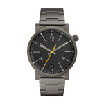 Black PVD stainless steel case with a olive leather strap. Fixed black PVD bezel. Black dial with luminous black hands and Arabic numeral hour markers. Minute markers around the outer rim. Dial Type: Analog. Luminescent hands. Three multi-function displays: 24 hour, date and day of the week. Quartz movement. Scratch resistant mineral crystal. Pull / push crown. Solid case back. Case diameter: 44 mm. Case thickness: 12 mm. Round case shape. Band width: 22 mm. Tang clasp. Water resistant at 100 meters / 330 feet. Functions: date, day, hour, minute, second. Casual watch style. Fossil Aeroflite Multi-Function Black Dial Olive Leather Men's Watch CH2941.