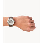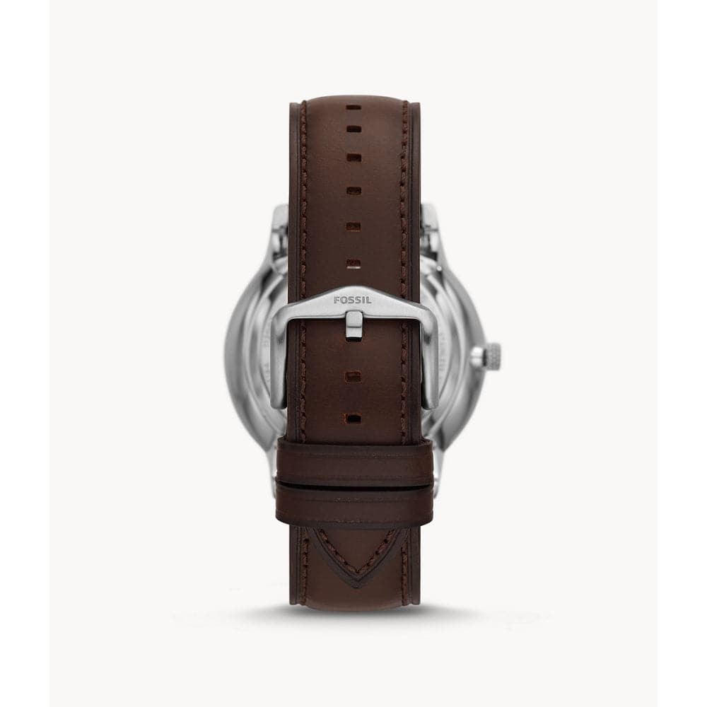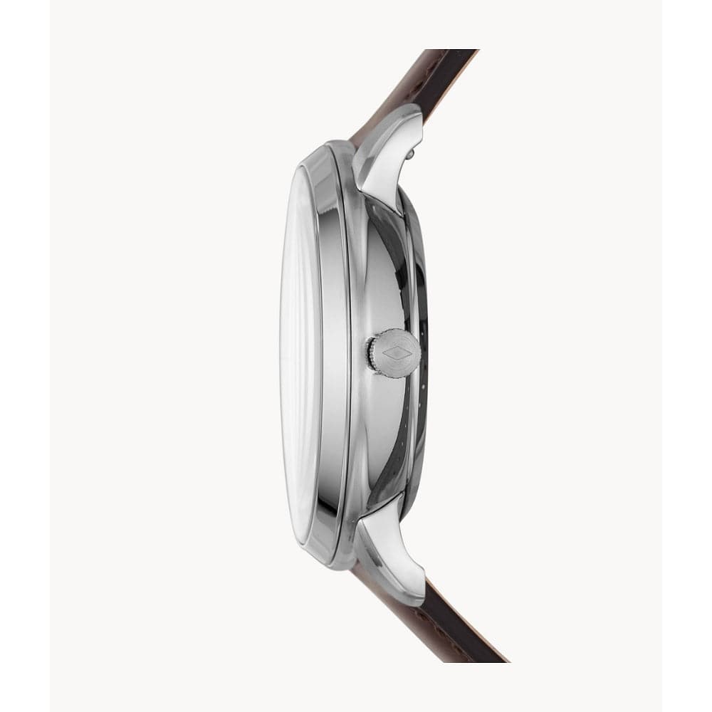 Black PVD stainless steel case with a olive leather strap. Fixed black PVD bezel. Black dial with luminous black hands and Arabic numeral hour markers. Minute markers around the outer rim. Dial Type: Analog. Luminescent hands. Three multi-function displays: 24 hour, date and day of the week. Quartz movement. Scratch resistant mineral crystal. Pull / push crown. Solid case back. Case diameter: 44 mm. Case thickness: 12 mm. Round case shape. Band width: 22 mm. Tang clasp. Water resistant at 100 meters / 330 feet. Functions: date, day, hour, minute, second. Casual watch style. Fossil Aeroflite Multi-Function Black Dial Olive Leather Men's Watch.