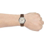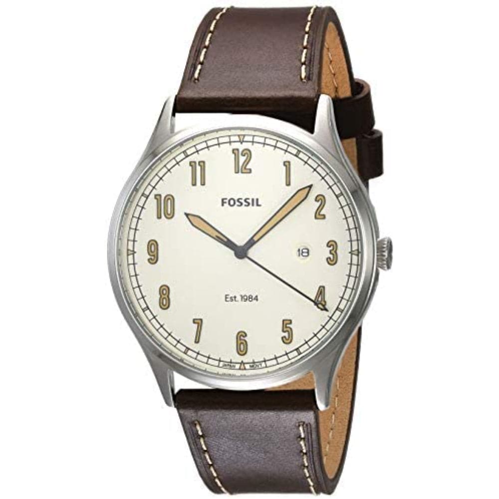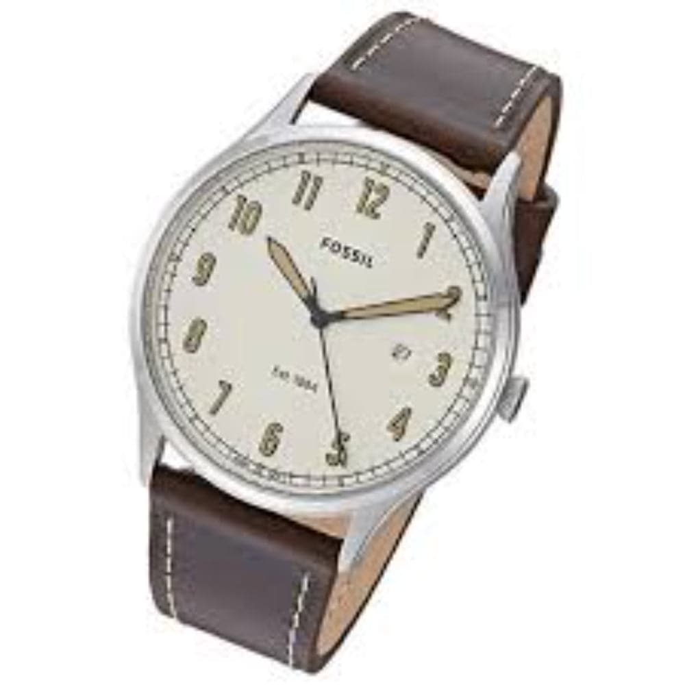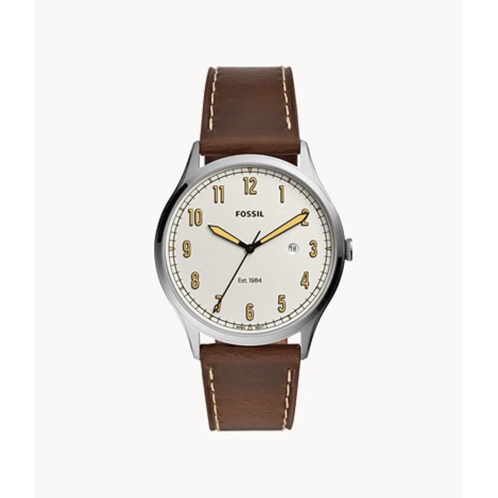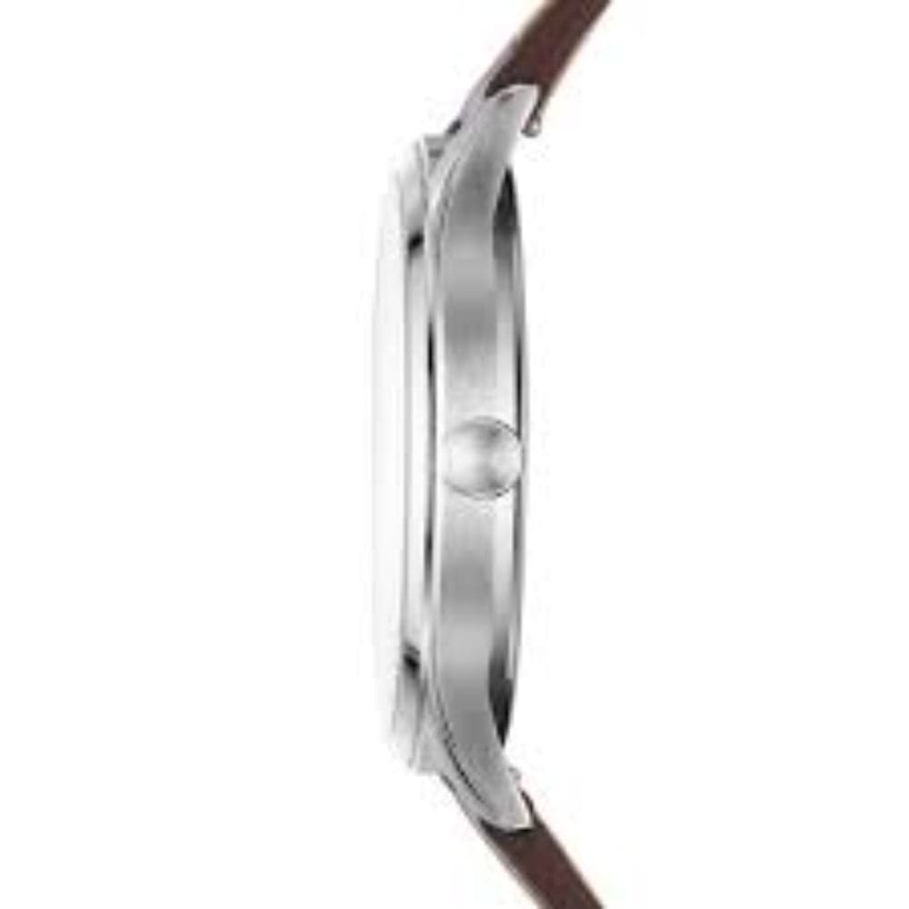 FOSSIL THREE HAND DATE SILVER ROUND BROWN LEATHER MEN'S WATCH FS5589