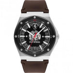 Sophisticated sport and elegance converge to deliver the Aspire collection and its sleek, sport-luxe design that distinguishes it from the competition. The 42mm timepiece is characterized by its angular case and bezel – inspired by the bolted surface of the Scuderia Ferrari single-seater. Its 3-hand dial boasts a distinctive, translucent design which conspicuously reveals the movement beneath. The dial is accented by dynamic indexes that draw attention to the center of the dial, which offers a glimpse into the engine of the timepiece. This Aspire is offered on a leather strap, featuring a contrasted, painted edge with tack-stitching.