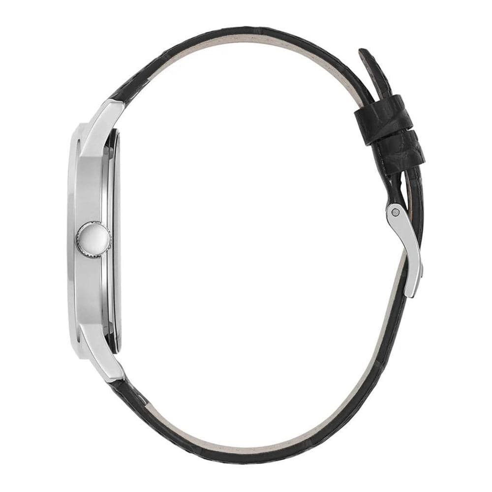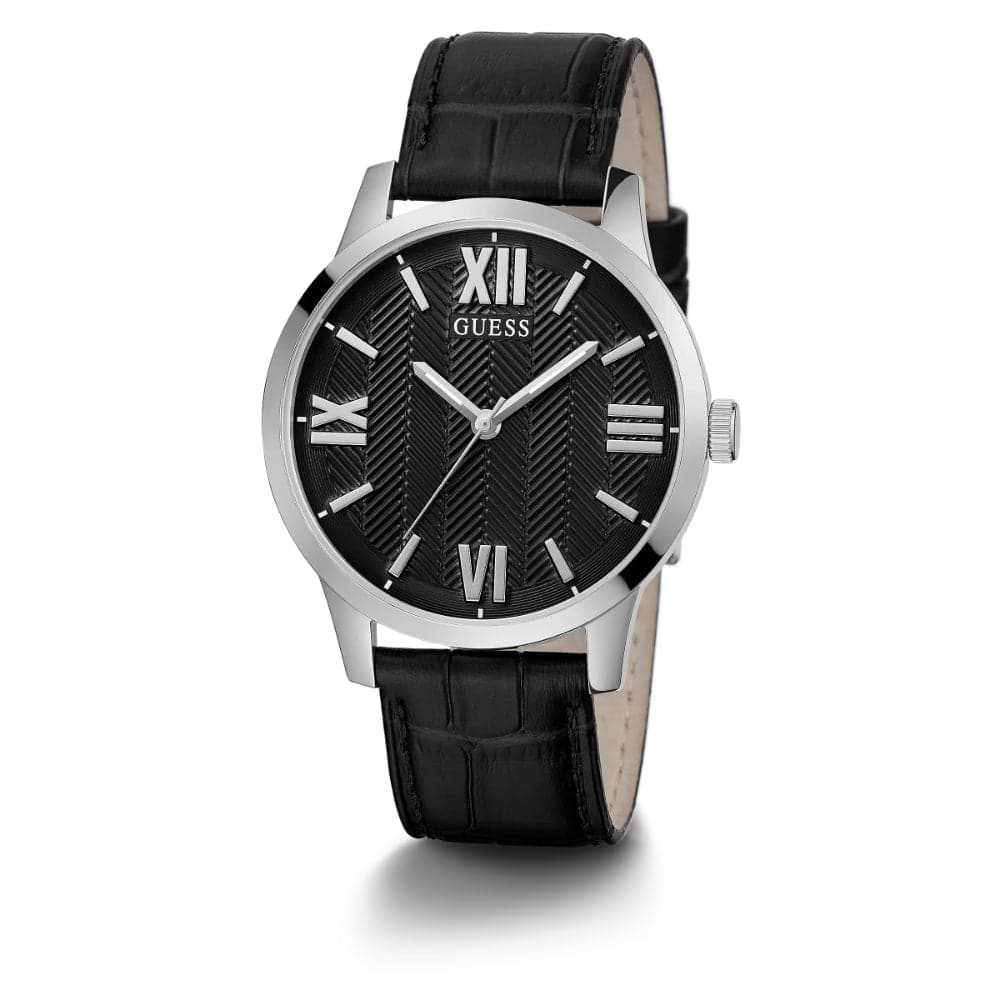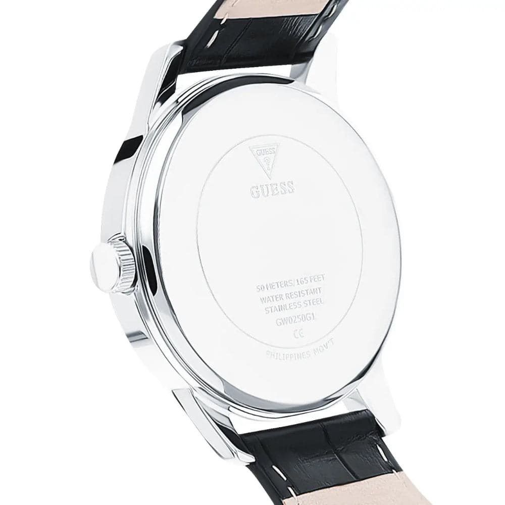 GUESS GW0250G1 SILVER TONE CASE BLACK GENUINE LEATHER MEN'S WATCH
