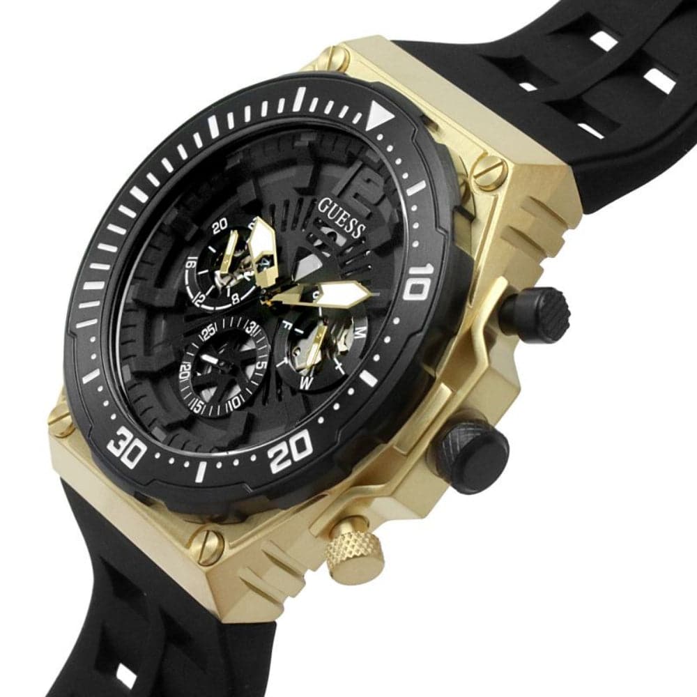 Guess Exposure GW0325G1 is a practical and very impressive Gents watch. Case material is Stainless Steel, which stands for a high quality of the item while the dial color is Black. In regards to the water resistance, the watch has got a resistance up to 50 meters. It means it can be submerged in water for periods, so can be used for swimming and fishing. It is not recommended for high impact water sports. The watch is shipped with an original box and a guarantee from the manufacturer.